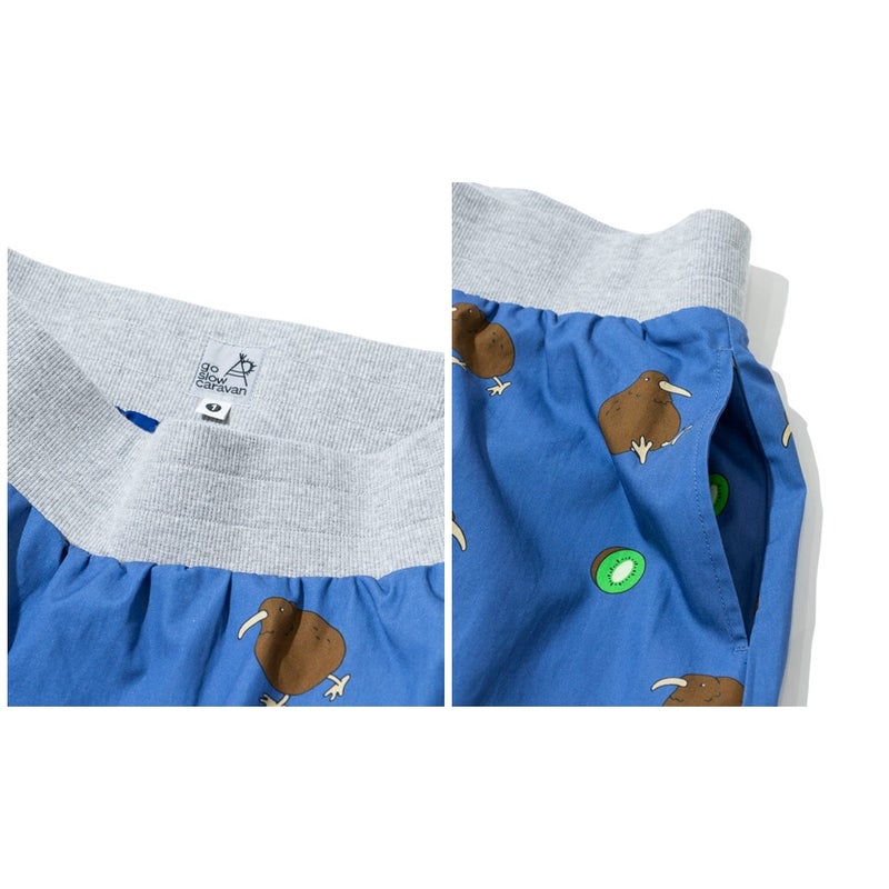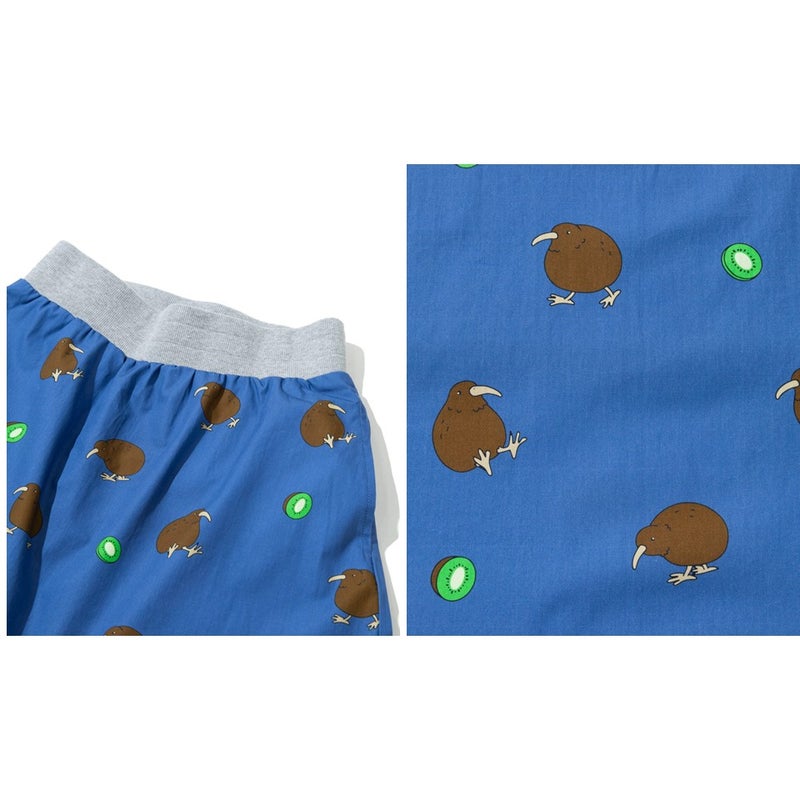 キーウィと、どこかユニークで珍しい鳥モチーフを散りばめた総柄の2柄で展開する、遊び心あふれるデザインです。