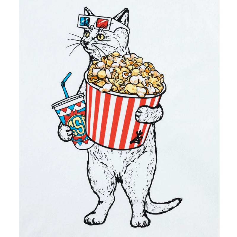 映画好きの猫を描いたロングスリーブTシャツ