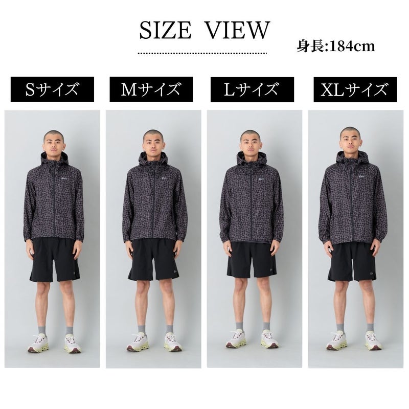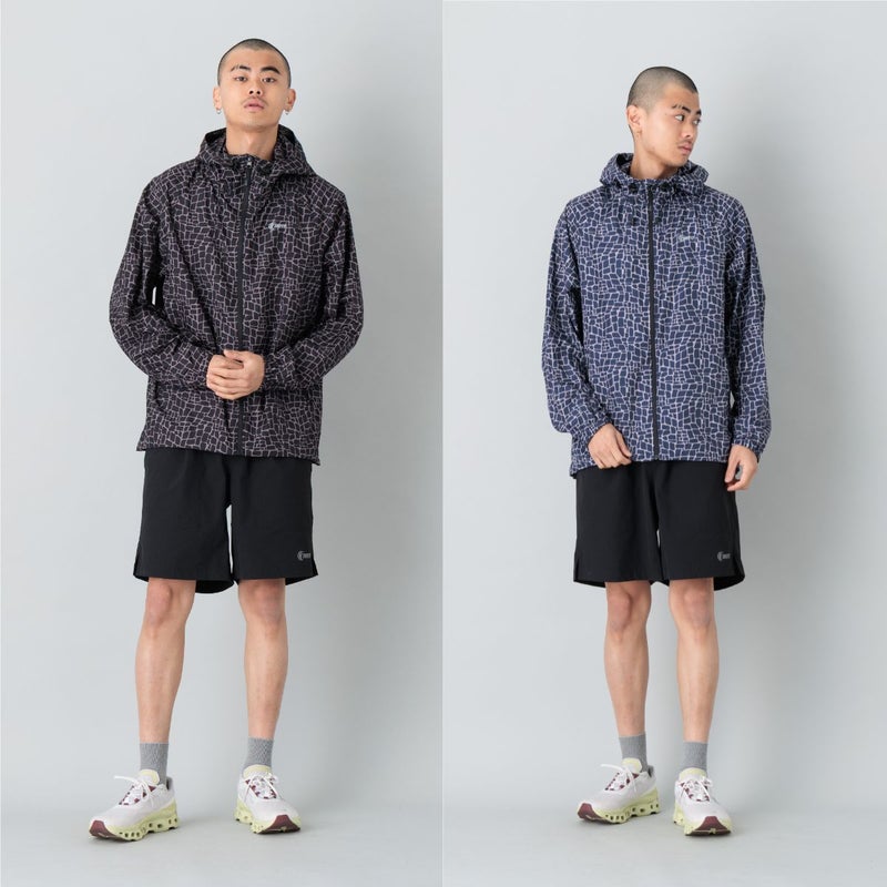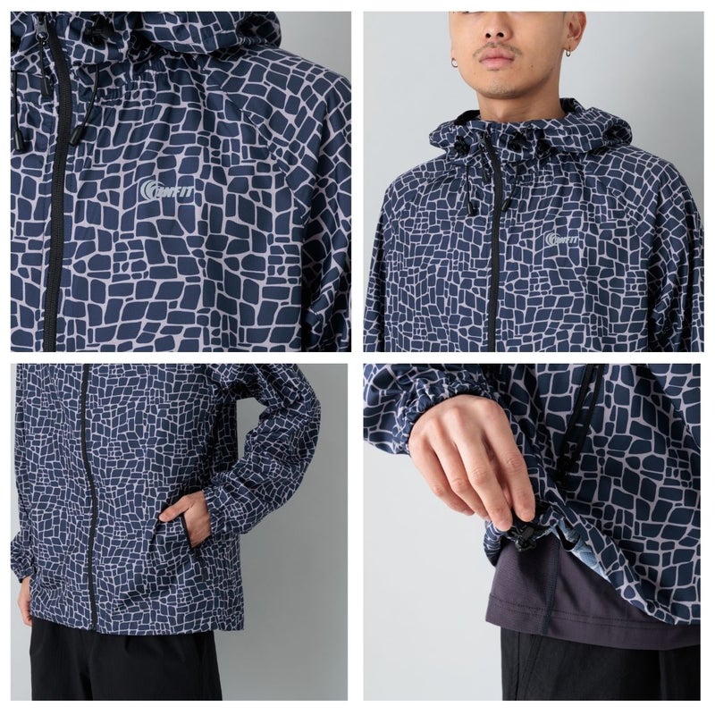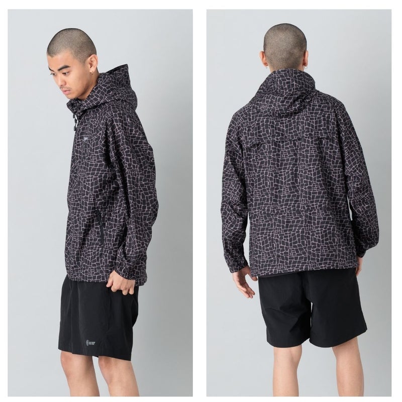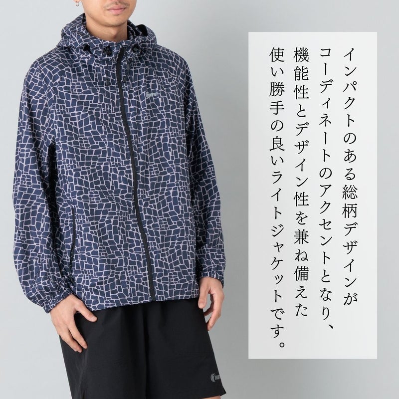 インパクトのある総柄デザインがコーディネートのアクセントとなり、機能性とデザイン性を兼ね備えた使い勝手の良いライトジャケットに仕上がっています。