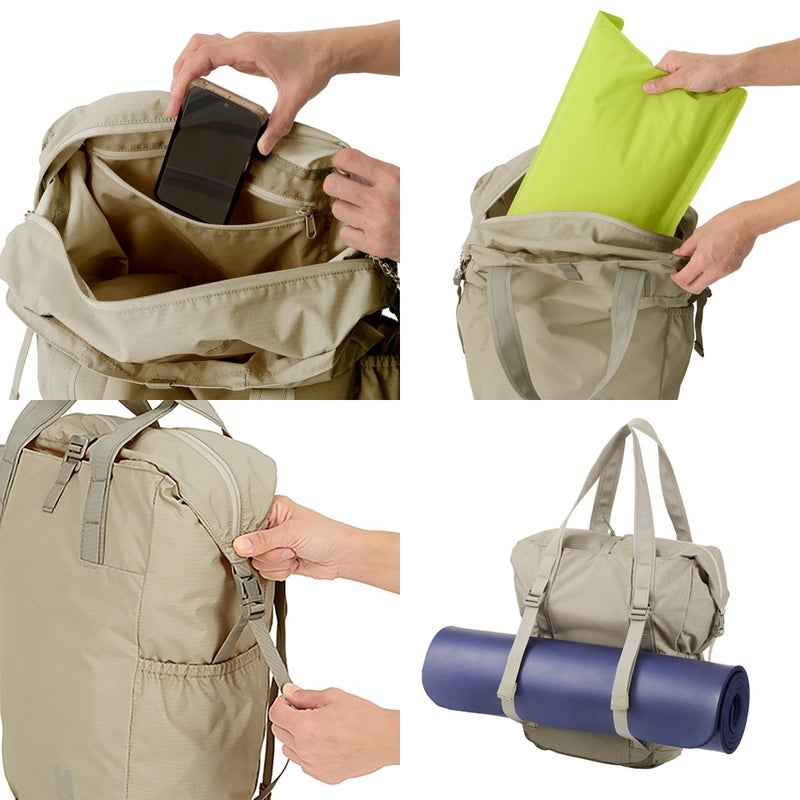 スッキリとしたデザインに、多彩なアウトドア・シーンで便利な機能を備えたトートバッグ。