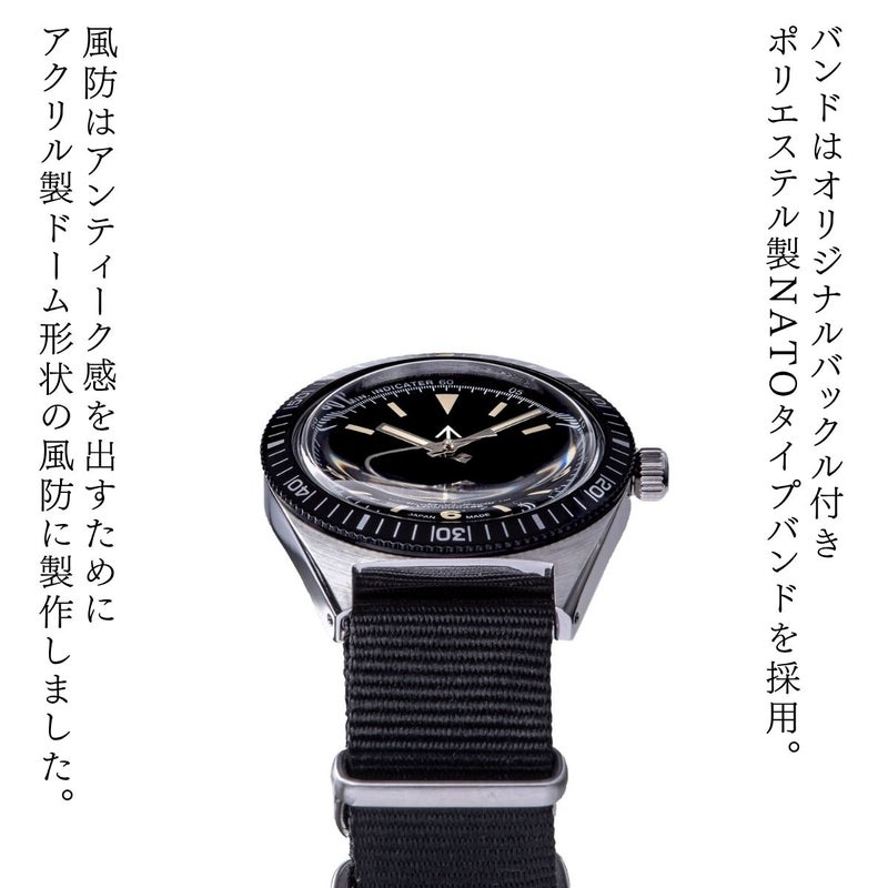 バンドはオリジナルバックル付き ポリエステル製NATOタイプバンドを採用。