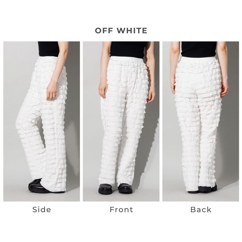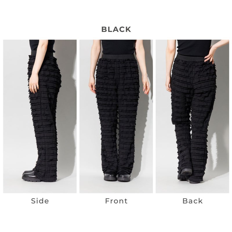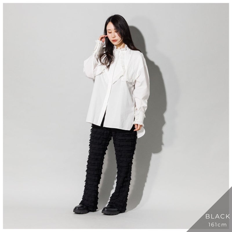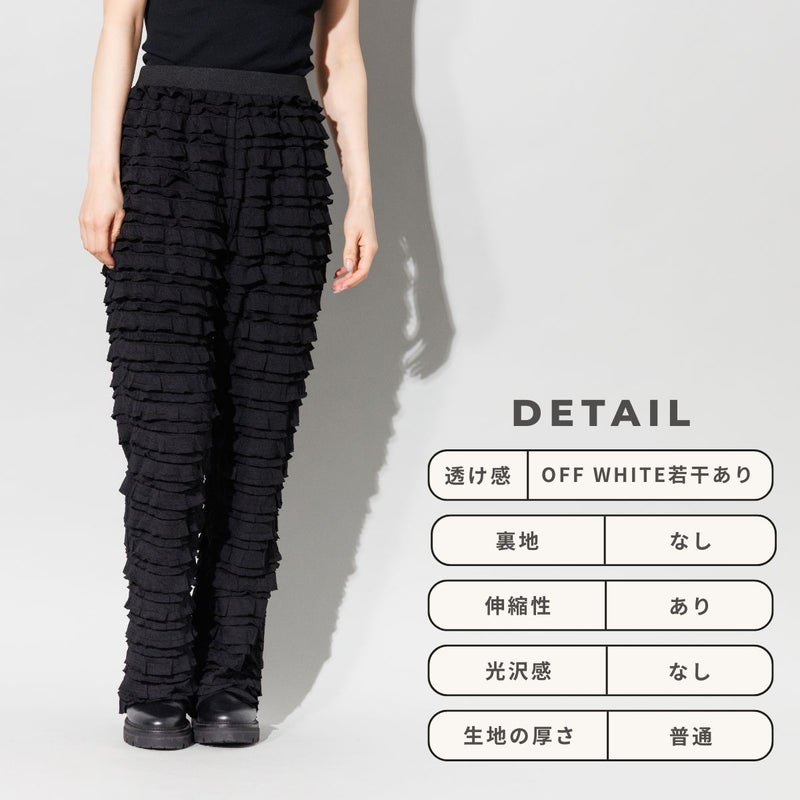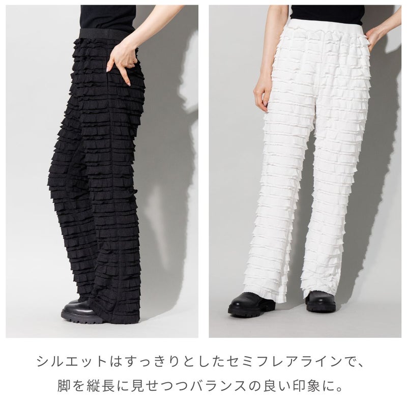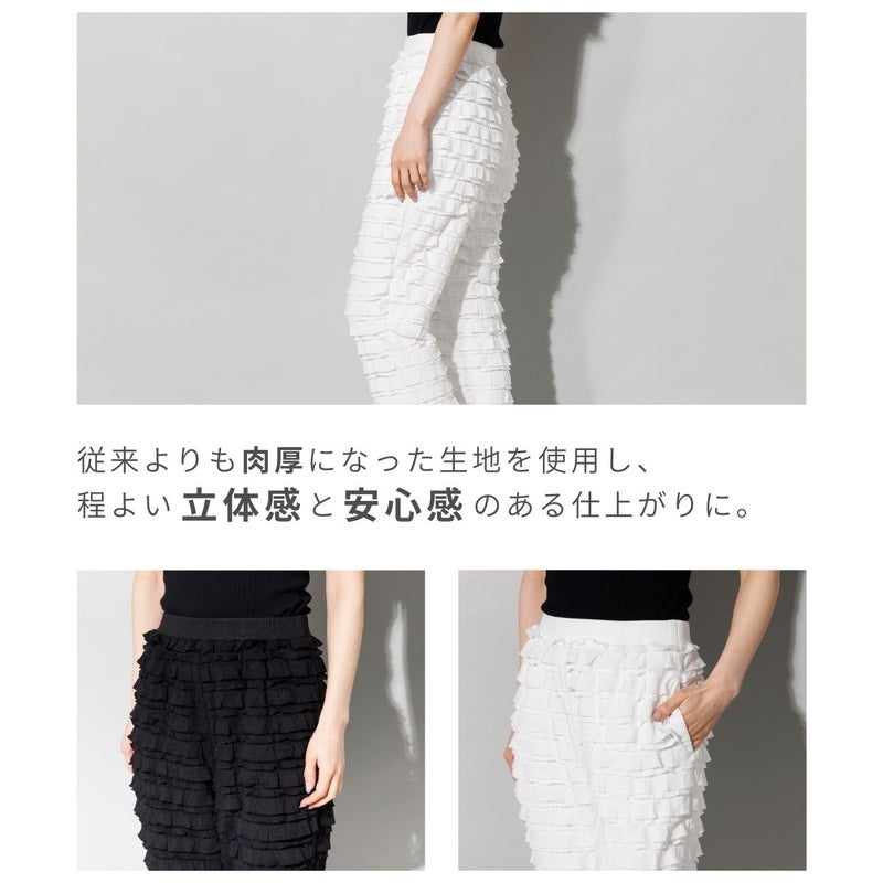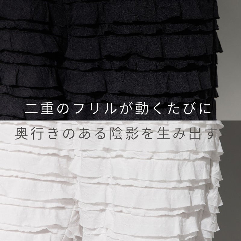 全体にあしらわれた二重のフリルが、動くたびに奥行きのある陰影を生み出し、