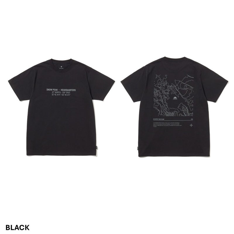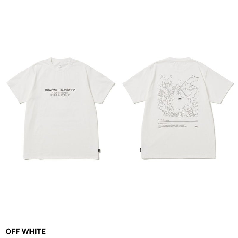 キャンプの拠点として知られるSnow Peak Headquartersの座標と地形図をモチーフにした、半袖クルーネックTシャツです。