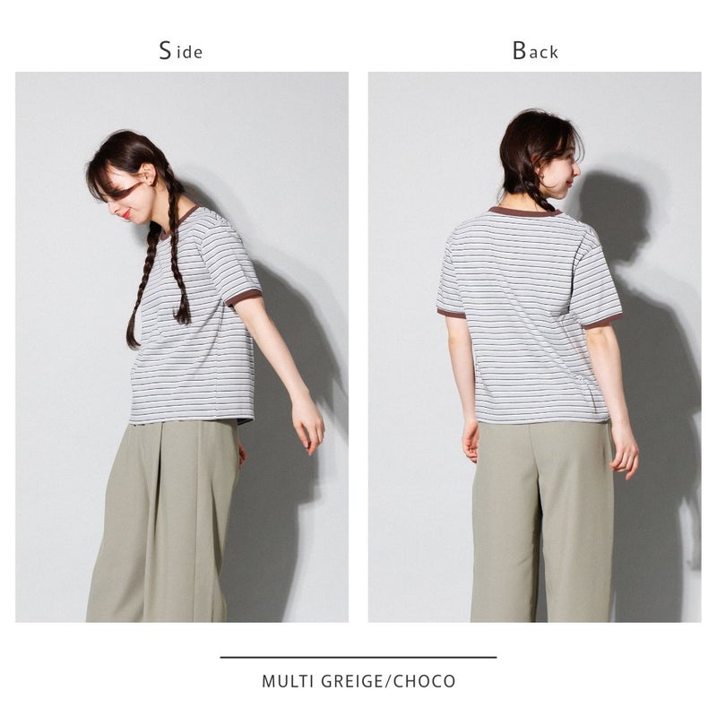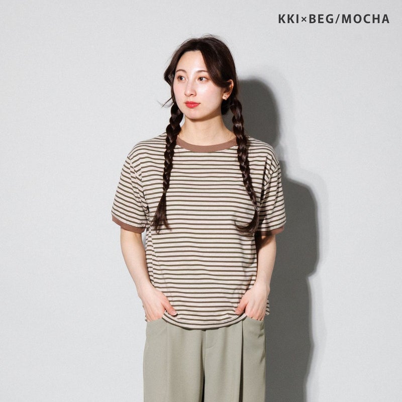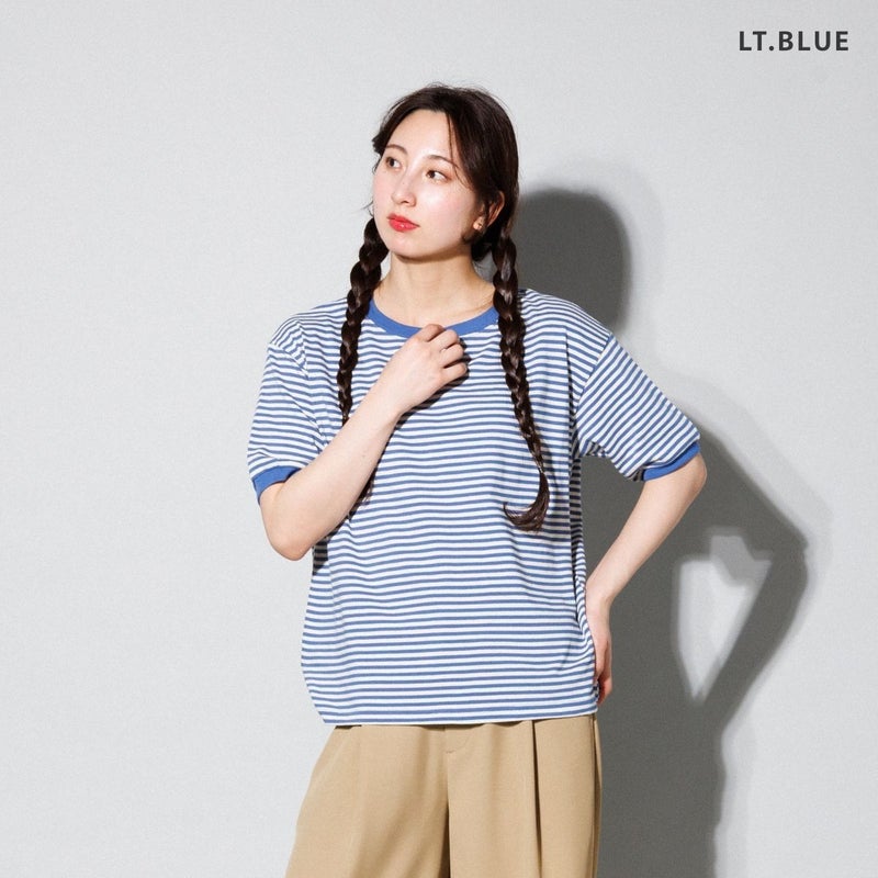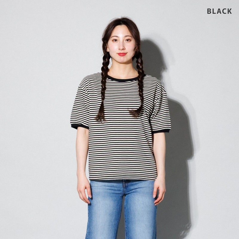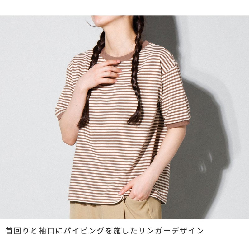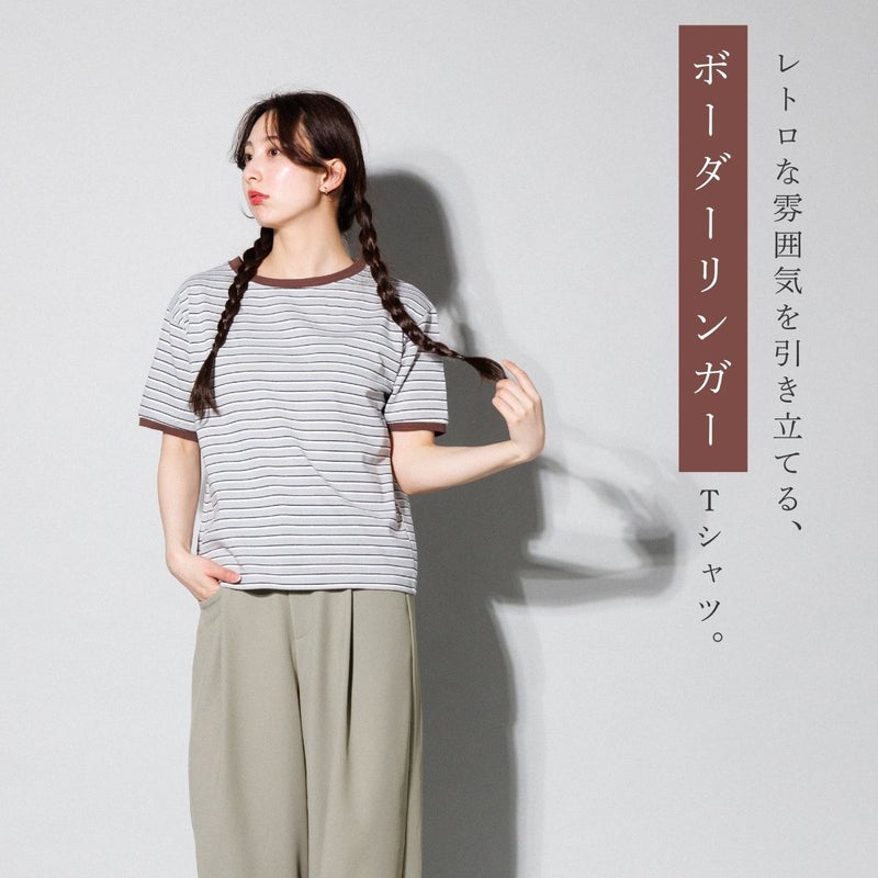 レトロな雰囲気を引き立てるボーダーリンガーTシャツ。