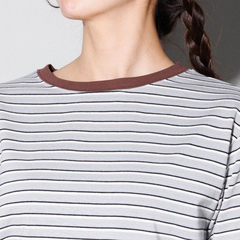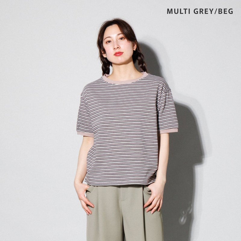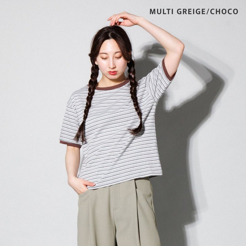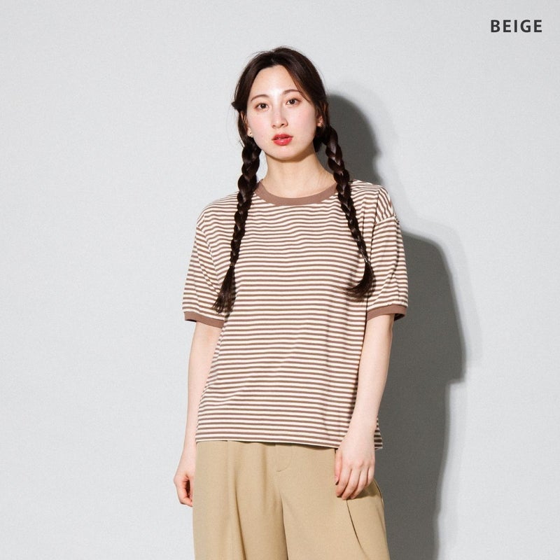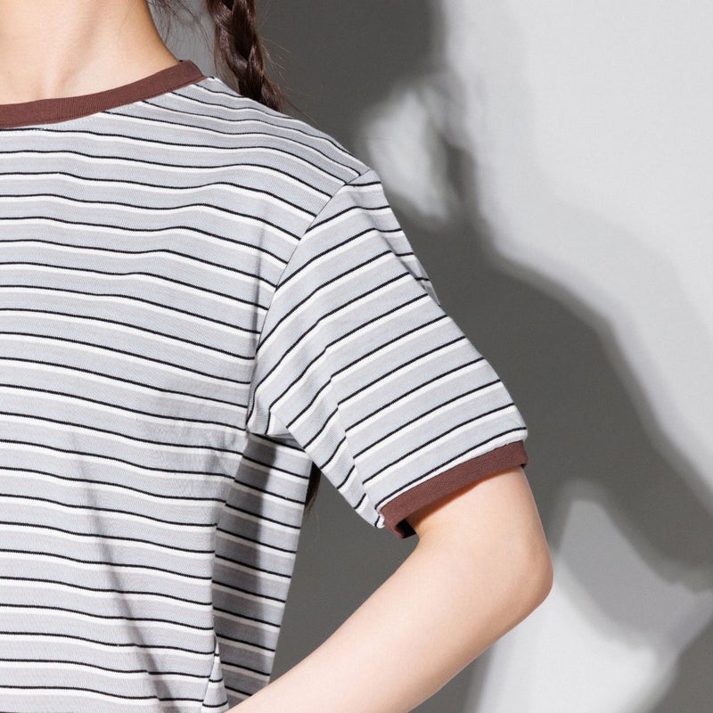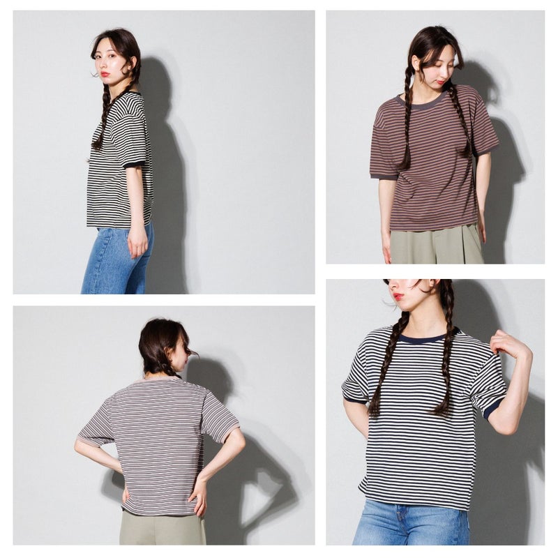 細めのボーダー柄でカジュアルながらもすっきりした印象。