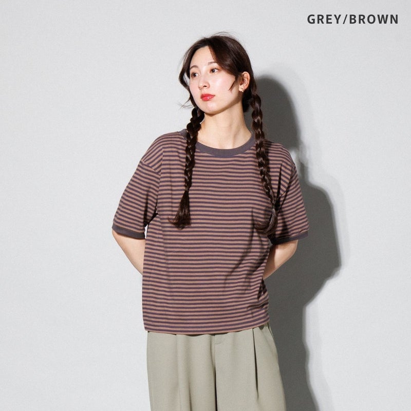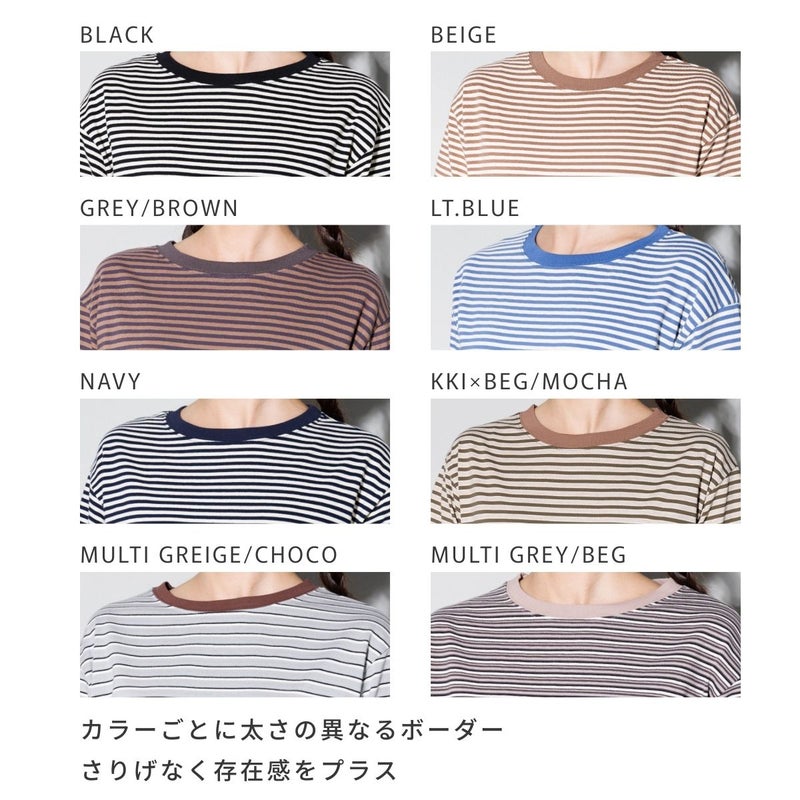 カラーごとに異なるボーダーの間隔とリブ配色で、表情豊かなデザインです。