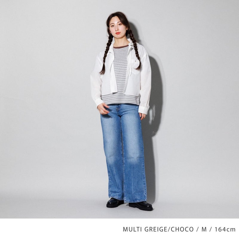 コンパクトな丈感で、デニムやハイウエストパンツ、スカートとも合わせやすい一枚です。