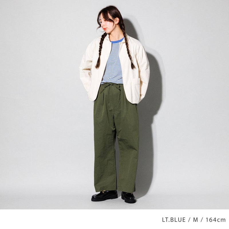 首元と袖口のリンガーデザインがアクセントになっています。