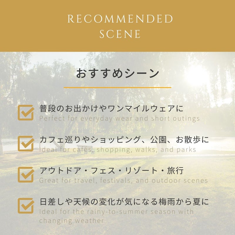 梅雨の時期やアウトドアなどアクティブな場面でも気軽に着用できる。