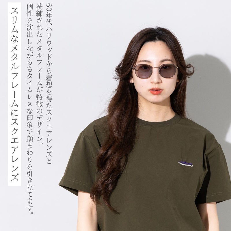 60年代ハリウッドから着想を得た、スクエアレンズと洗練されたメタルフレームが特徴のデザイン。個性を演出しながらもタイムレスな印象で顔まわりを引き立てます。実用性とファッション性を兼ね備え、通年でコーディネートのアクセントとして活躍するアイテムです。