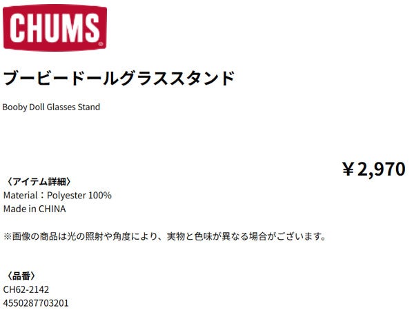 小物 アクセサリー チャムス ブービードールグラススタンド ユニセックス CHUMS Booby Doll Glasses Stand CH62-2142
