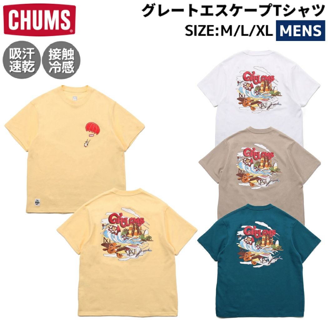 【30%OFF】 チャムス CHUMS グレートエスケープTシャツ メンズ 春 夏 カジュアル アウトドア 半袖 シャツ トップス 綿ポリ 吸汗速乾 接触冷感 CH01-2370アウトレット セール