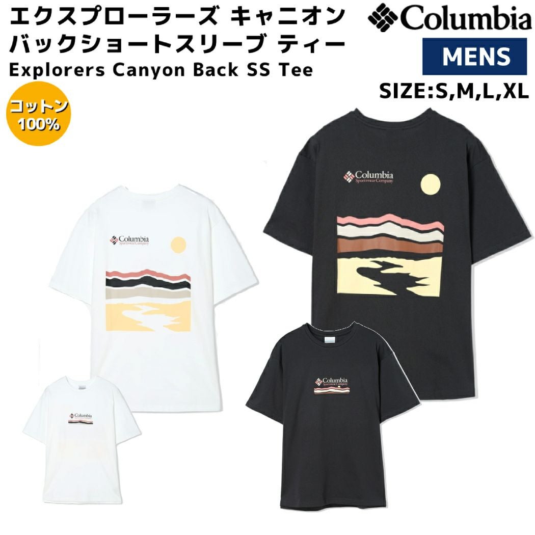 【35%OFF】 コロンビア Columbia エクスプローラーズ キャニオン バックショートスリーブ ティー メンズ 春 夏 カジュアル 半袖 Tシャツ ブラック 黒 ホワイト 白 アウトドア シャツ コットン100% AJ5592 014 108 アウトレット セール