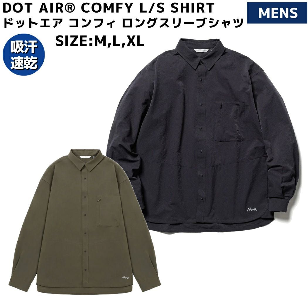 【20%OFF】 ナンガ NANGA DOT AIR COMFY L/S SHIRT ドットエア コンフィ ロングスリーブシャツ メンズ オールシーズン カジュアル 長袖 シャツ ブラック カーキ アウトドア 出張 旅行 オフィス オフィスカジュアル おしゃれ N000 0412 0413 0414 1206 1207 1208