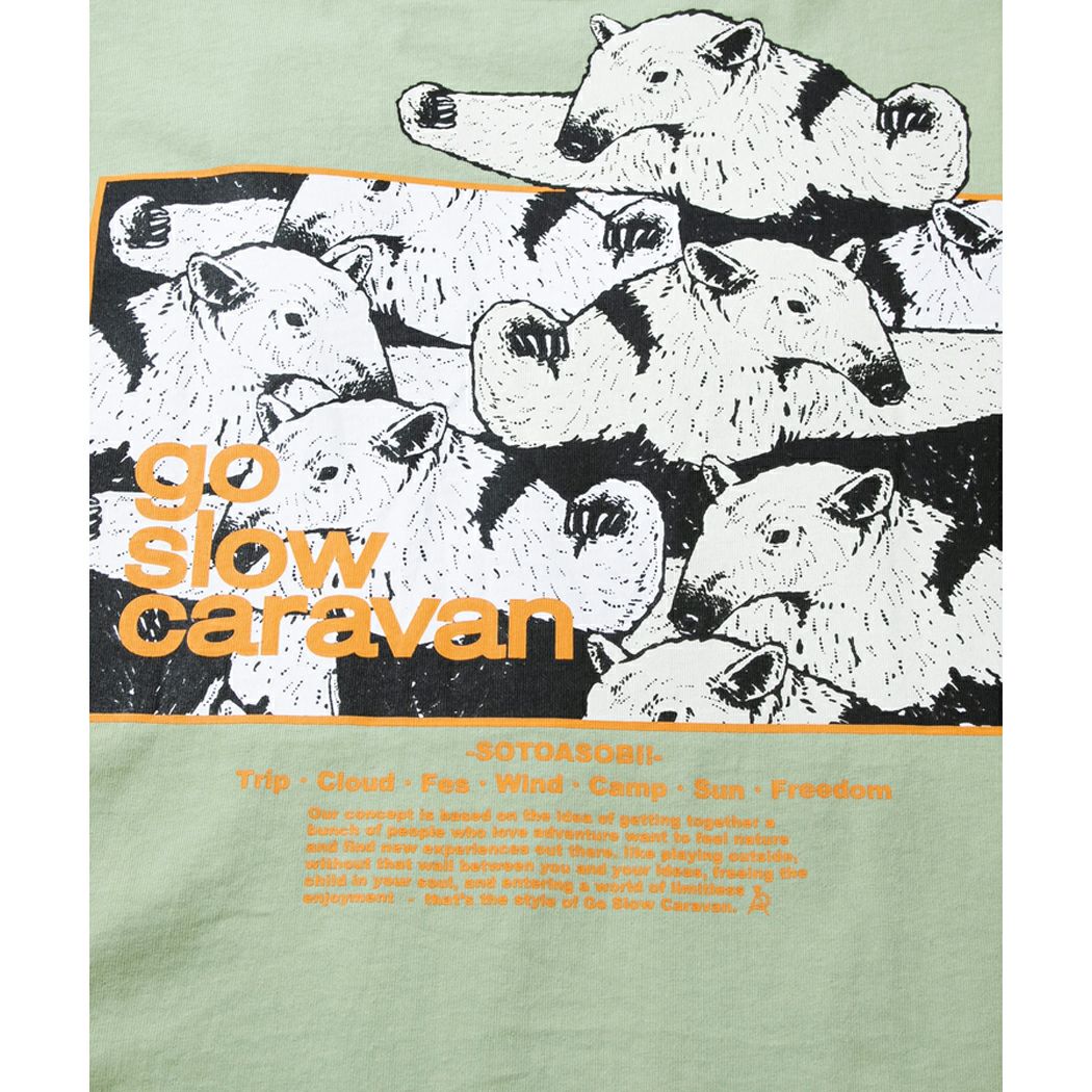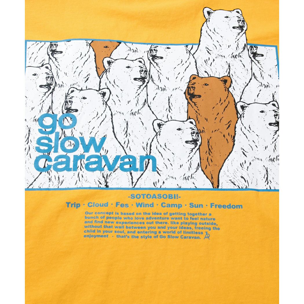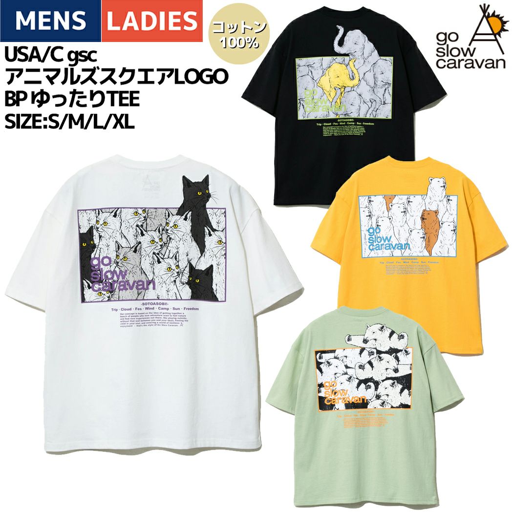 【30%OFF】 ゴースローキャラバン go slow caravan USA/C gsc アニマルズスクエアLOGO BP ゆったりTEE メンズ レディース ユニセックス 半袖 Tシャツ アニマル コットン 綿 ホワイト ブラック イエロー グリーン カジュアル 391917 000 012 021 051 アウトレット セール