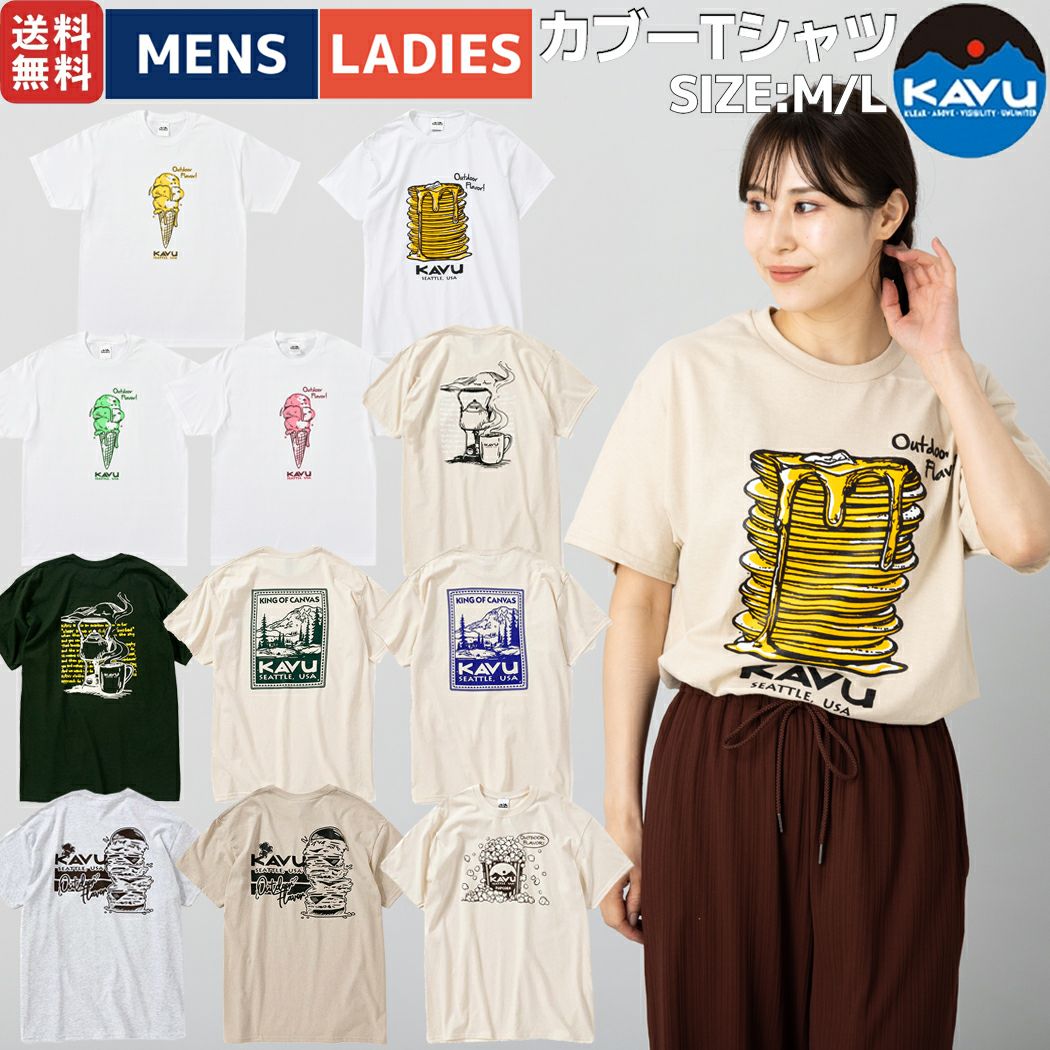 【30%OFF】 カブー KAVU Tシャツ 半袖 メンズ レディース ユニセックス 春夏 スイーツ コットン100% 綿100% アイス コーヒー 切手 ハンバーガー パンケーキ ポップコーン ホワイト ベージュ 19821 アウトレット セール