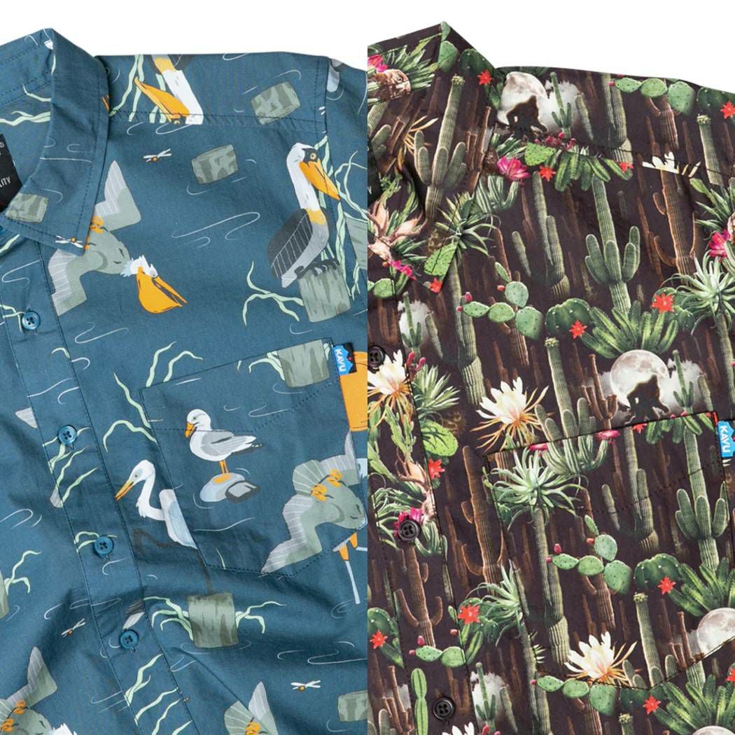 【10%OFF】 カブー KAVU シャツ 半袖 メンズ レディース ユニセックス 春夏 総柄 コットン100% 綿100% ネイチャー柄 バード 鳥 サボテン ウサギ カヌー 19810874 19810500