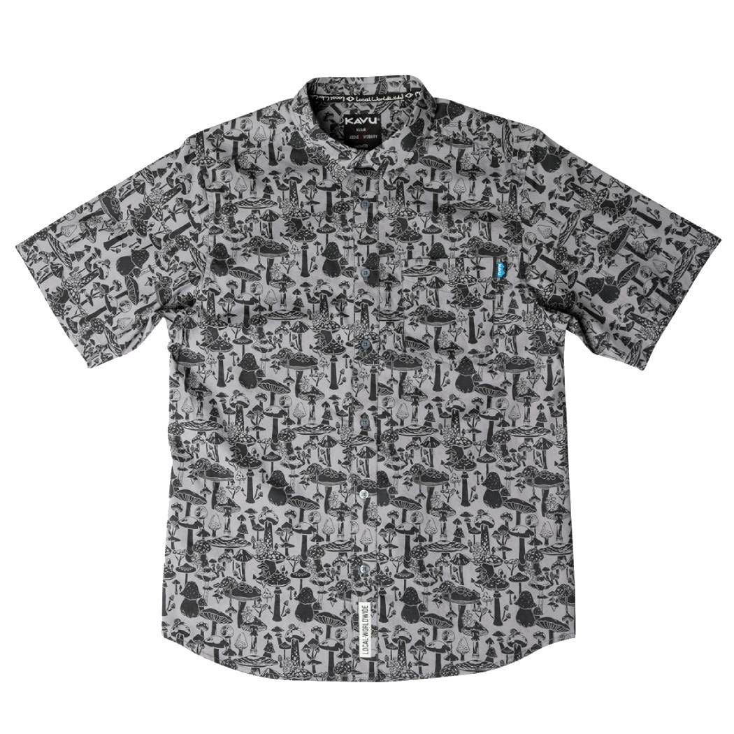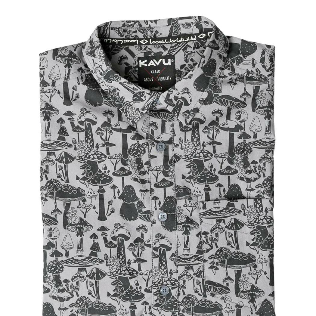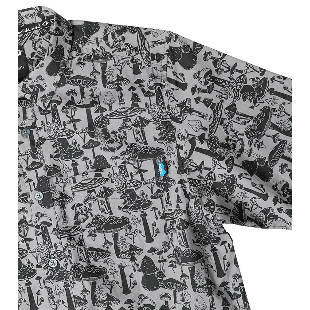 【10%OFF】 カブー KAVU Festaruski フェスタルスキー メンズ レディース ユニセックス 春夏 総柄 コットン100% グレー カジュアル 半袖 シャツ きのこ柄 キノコ マッシュルーム 19810300