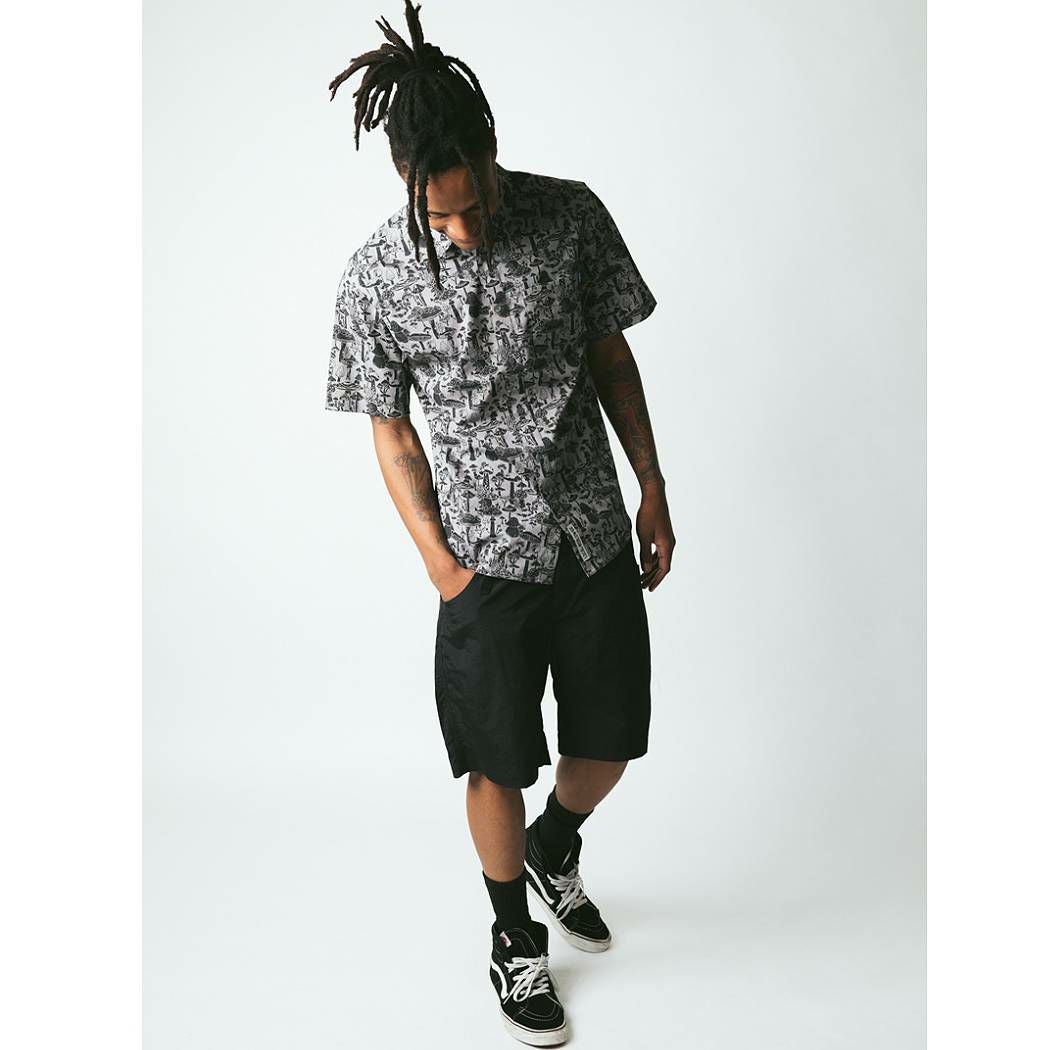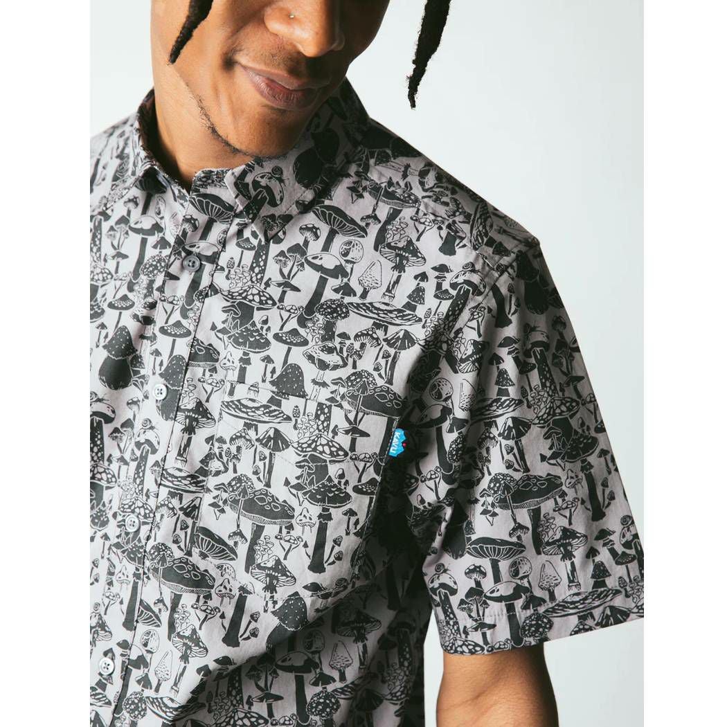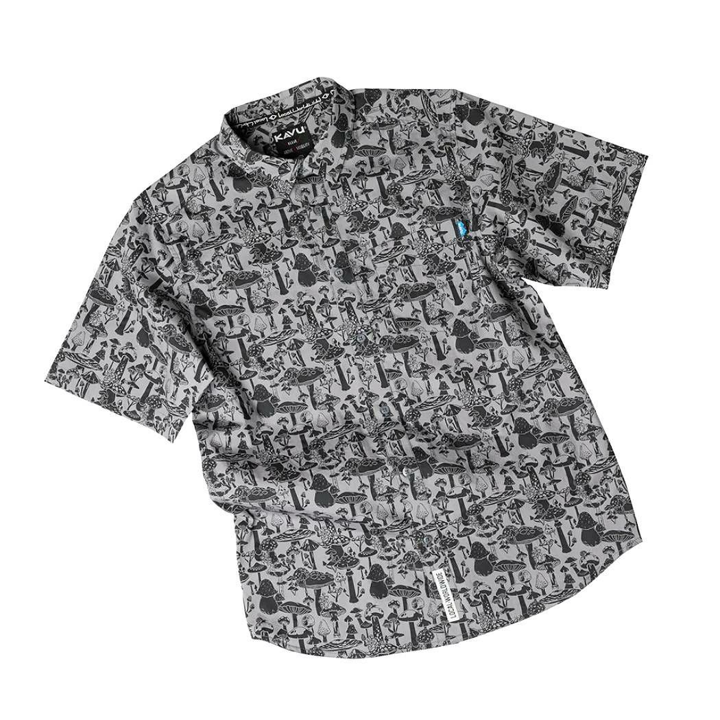 【10%OFF】 カブー KAVU Festaruski フェスタルスキー メンズ レディース ユニセックス 春夏 総柄 コットン100% グレー カジュアル 半袖 シャツ きのこ柄 キノコ マッシュルーム 19810300