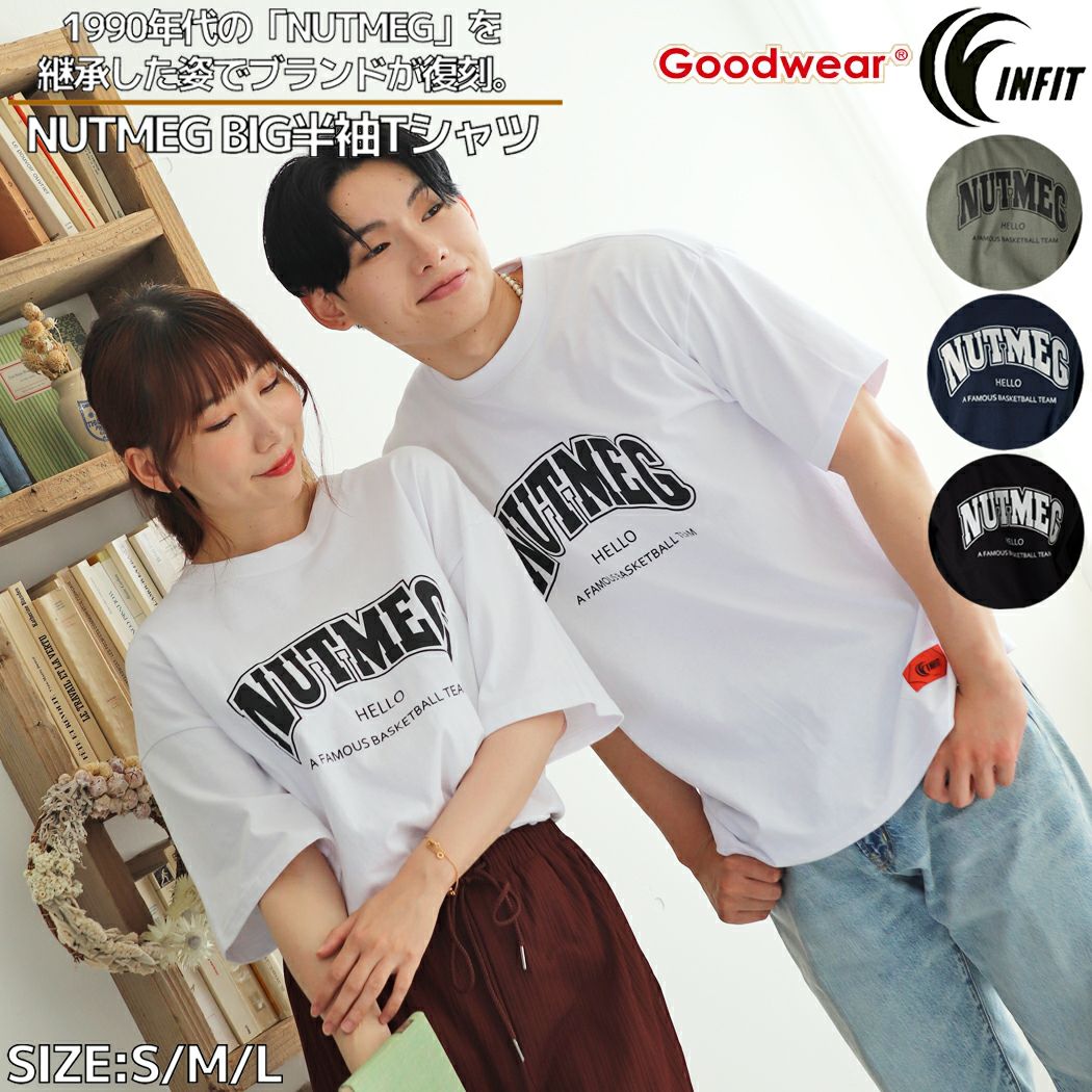 【76%OFF】 Tシャツ メンズ レディース ユニセックス 半袖Tシャツ カットソー トップス ビッグT NUTMEG BIG半袖Tシャツ 春 夏 秋 カジュアル シャツ 半袖 コットン 綿100% USAコットン 肉厚 オシャレ 丸首 クルーネック 10代 20代 30代 40代 INFIT インフィット good wear グッドウェア アウトレット セール