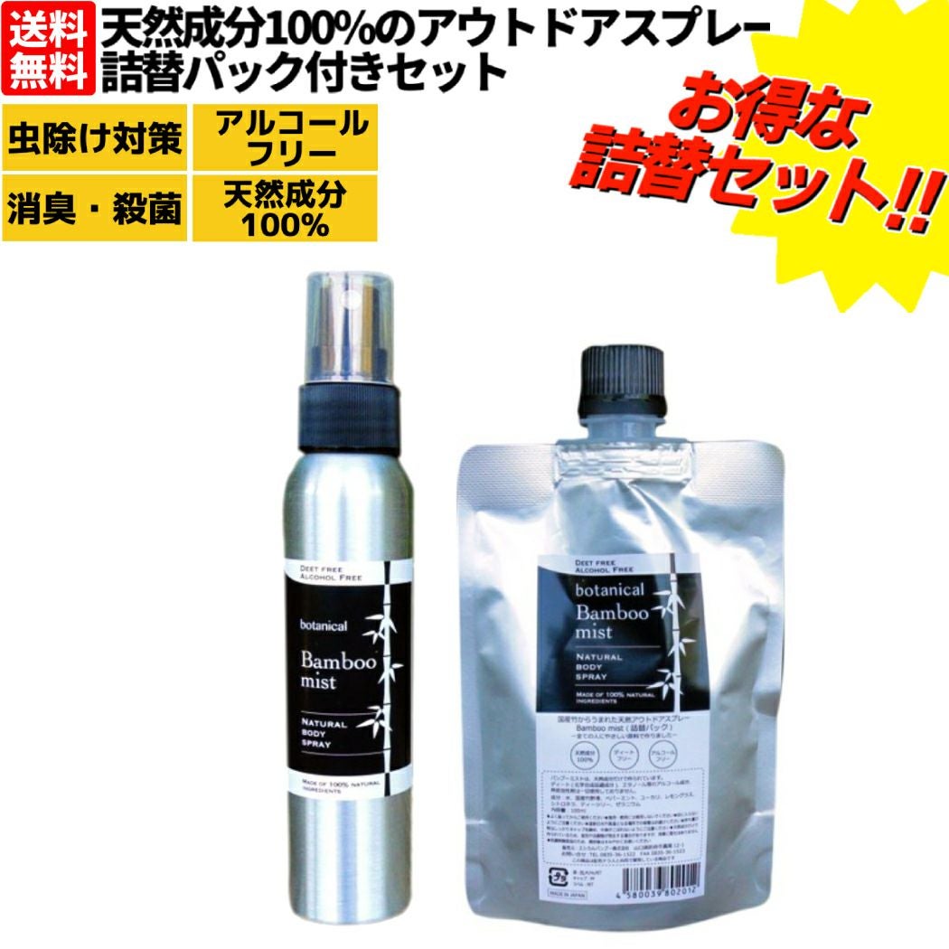 登山 アウトドア トレイル 小物 バンブークリア BambooClear 天然成分100%のアウトドアスプレー 詰替パック付きセット バンブーミスト 100ml 日本製 詰替用 竹 消臭スプレー 虫よけスプレー 虫除け 防菌 抗菌 遠足 旅行 車内 お出掛け アウトドア キャンプ BBQ