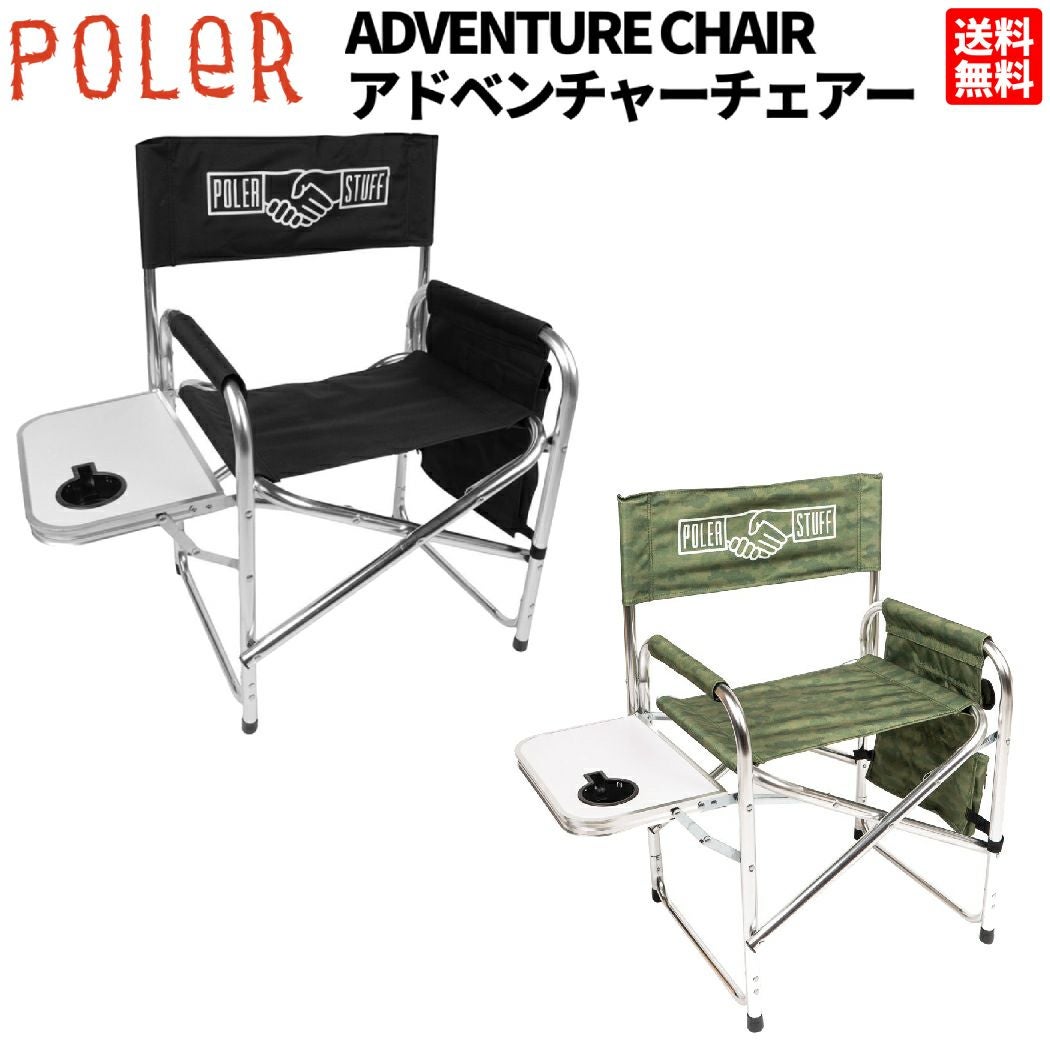 【40%OFF】 ポーラー POLeR ADVENTURE CHAIR アドベンチャーチェアー 折り畳み椅子 テーブル付 カモ柄 ブラック 黒 登山 アウトドア トレイル 小物 EQU9801 アウトレット セール