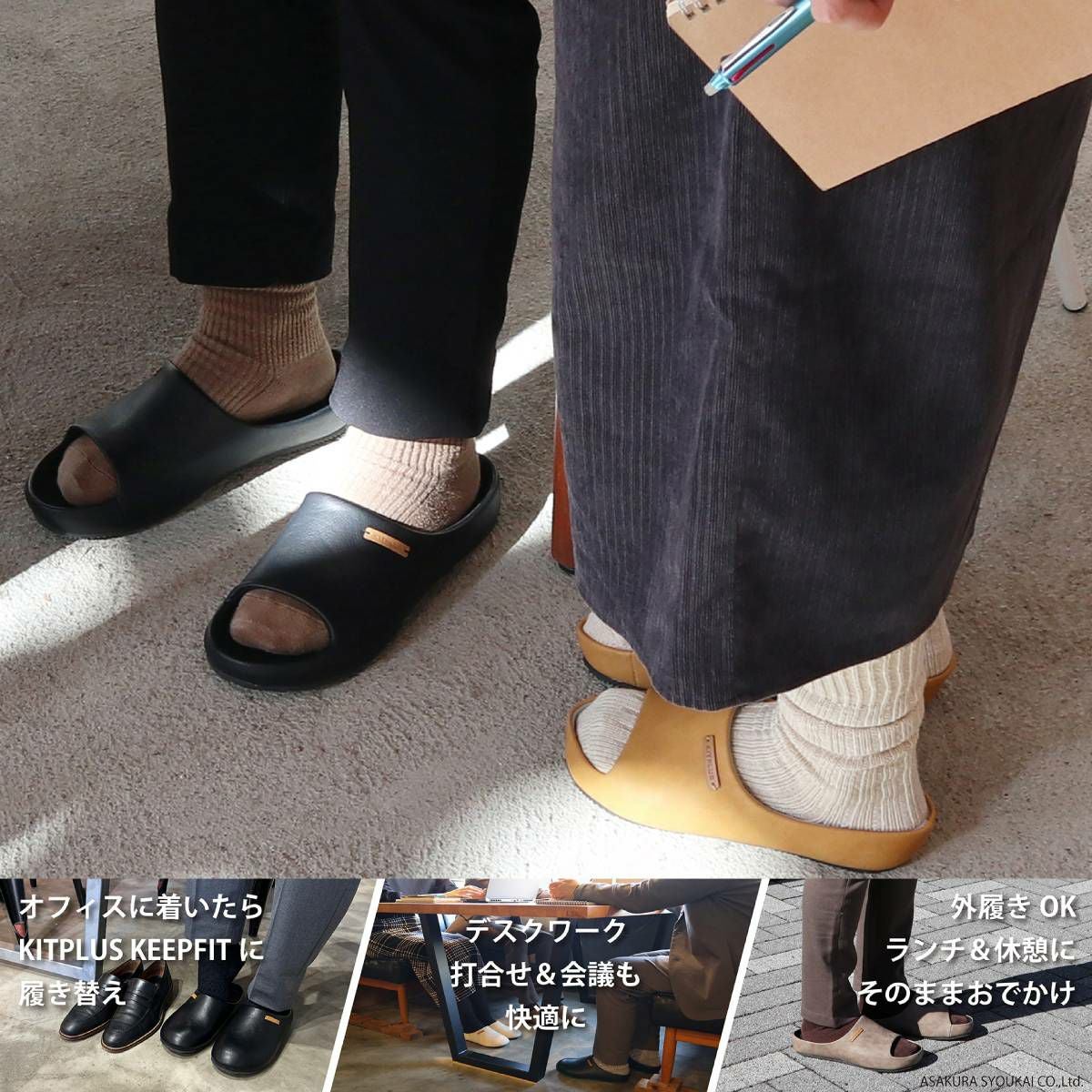 キットプラス KITPLUS KEEPFIT フェイクレザー サボサンダル メンズ キープフィット 体圧分散 アーチフィット 抗菌 防臭 キープフィット カジュアル サンダル シューズ リラックスタイム オフィス 履き替え ルームシューズ ワンマイルシューズ XG-21140