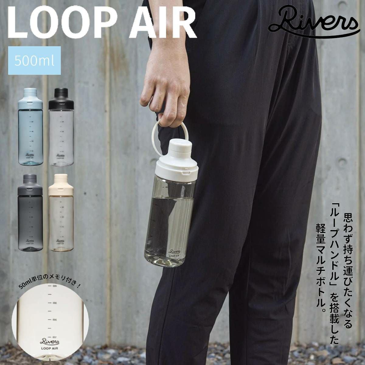 登山 アウトドア トレイル 小物 リバーズ RIVERS ループエア 500 メンズ レディース ユニセックス 水筒 ボトル 500ml 耐熱 耐冷 登山 アウトドア トレイル 小物 キャンプ BBQ スポーツ 目盛り付き フィットネス ジム プロテイン シェイカー BT012
