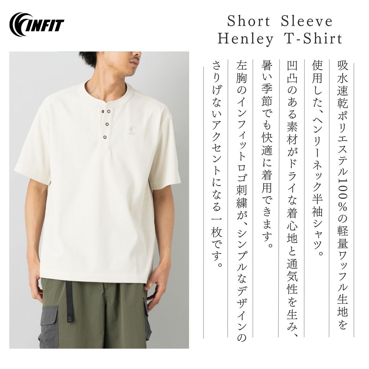 カジュアル 半袖 シャツ インフィット ヘンリーネック半袖Tシャツ メンズ INFIT