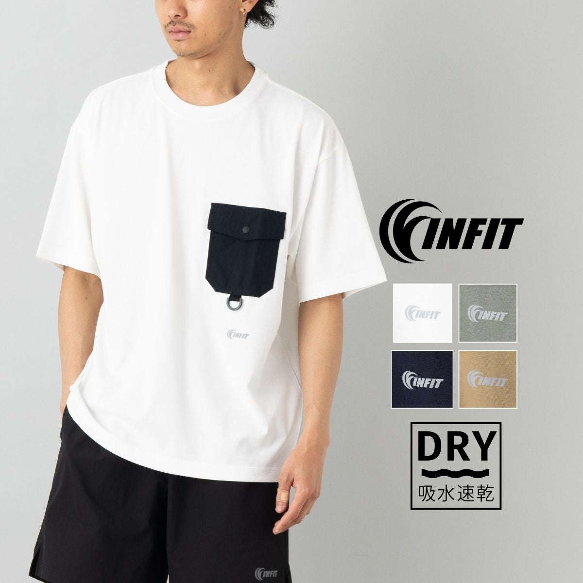 カジュアル 半袖 シャツ インフィット クイックドライ ユーティリティ ポケットTシャツ メンズ INFIT