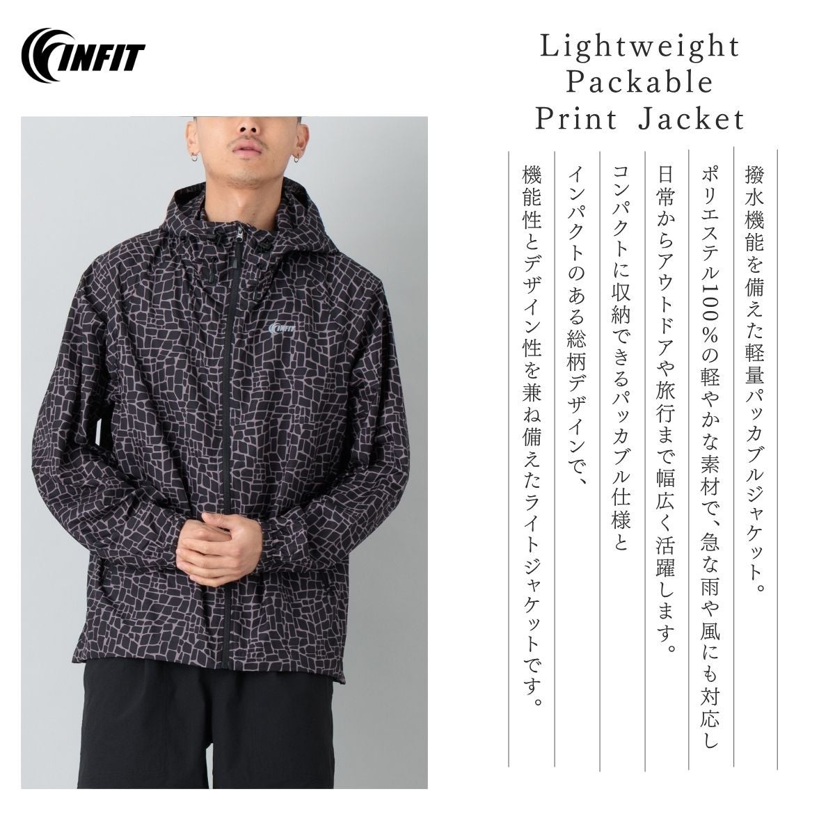 カジュアル ウェア アウター インフィット ライトウェイトポケッタブルプリントジャケット メンズ INFIT