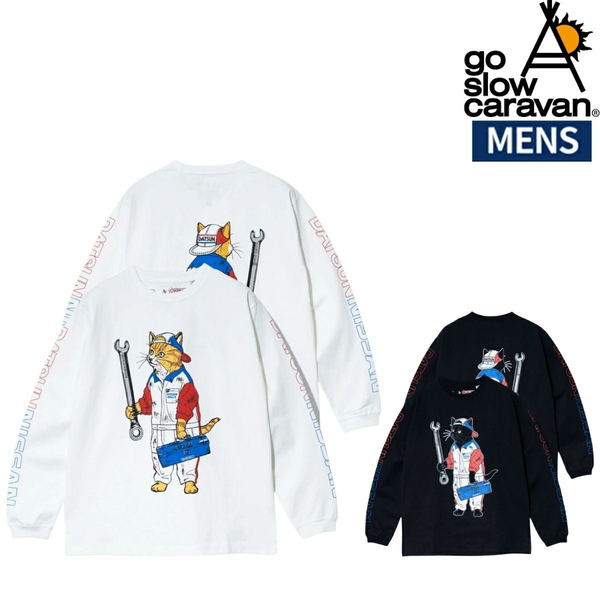 【67%OFF】 ゴースローキャラバン NISSAN×go slow caravan 超ヘビーUSA/CRALLYメカニック猫ロングスリーブTEE go slow caravan 351951 アウトレット セール