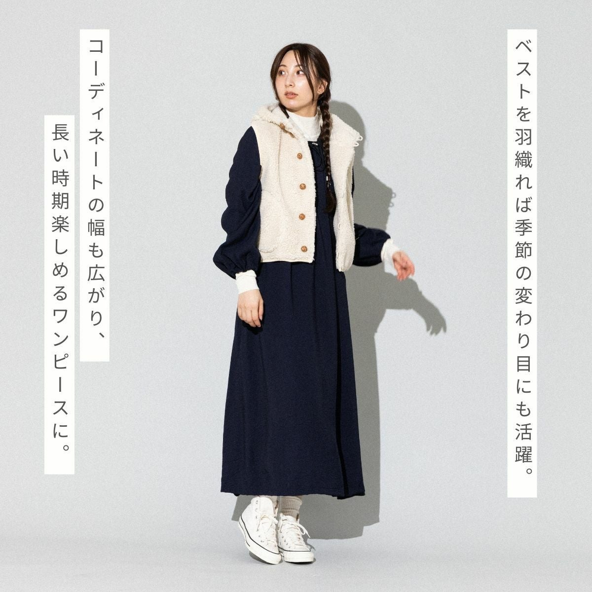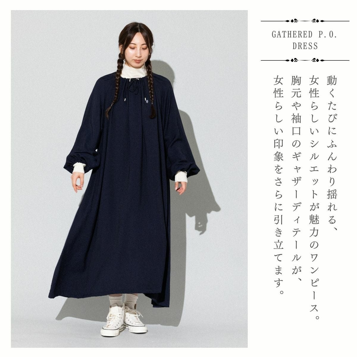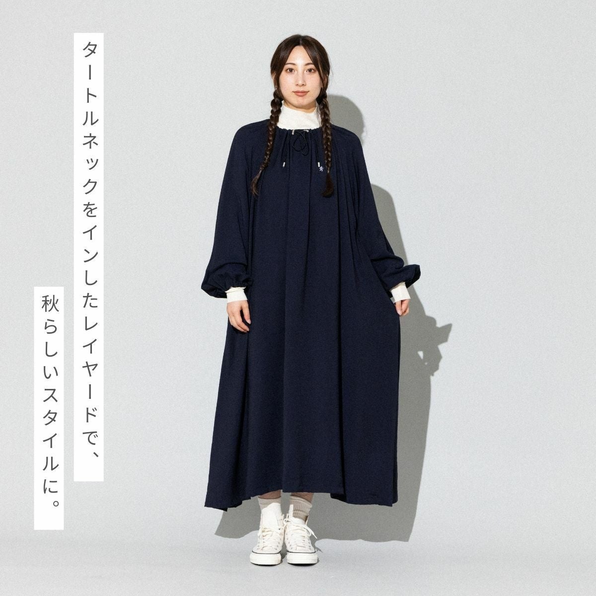 【30%OFF】 ジムフレックス GYMPHLEX ネックギャザー 長袖ワンピース レディース 春 秋 冬 ワンピース ネイビー 紺 ロング丈 おしゃれ かわいい 重ね着 レイヤード GY-G0109 アウトレット セール