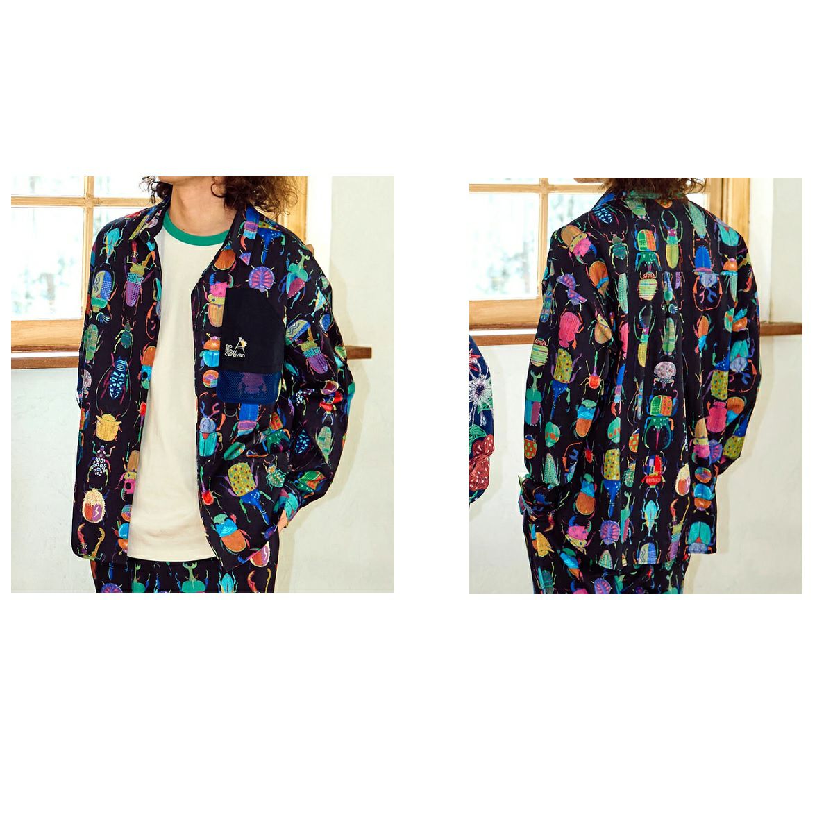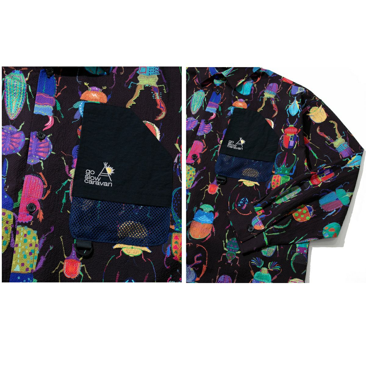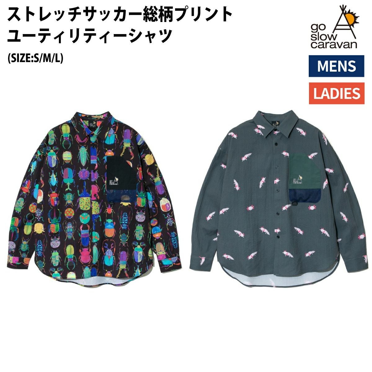 【30%OFF】 ゴースローキャラバン go slow caravan ストレッチサッカー総柄プリントユーティリティーシャツ 長袖シャツ カジュアル シャツ 346123 011 012 アウトレット セール