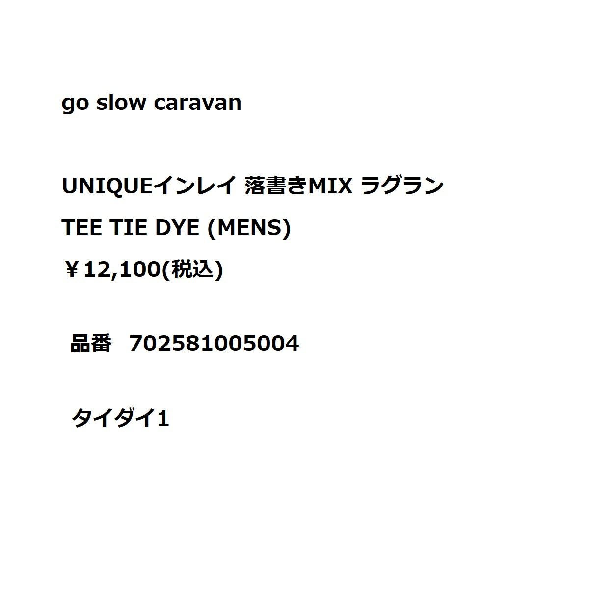 【25%OFF】カジュアル 半袖 シャツ ゴースローキャラバン go slow caravan UNIQUEインレイ 落書きMIX ラグラン TEE TIE DYE Tシャツ タイダイ 絞り染め カジュアル 半袖 シャツ 342604 175