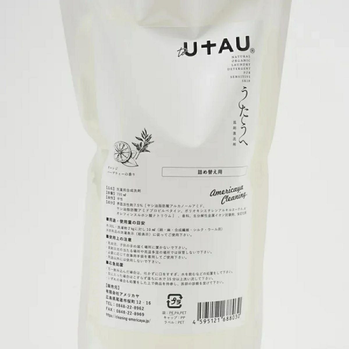 登山 アウトドア トレイル 小物 【お得な2点セット!】うたうへ to UTAU 詰め替え用パウチ2点セット 700ml 詰め替え リフィル 洗濯洗剤 大人 子供 生活雑貨 日用品 中性洗剤 赤ちゃん ご年配 低刺激 100%植物由来 環境保護 自然 肌に優しい 敏感肌 アレルギー 漂白剤不使用 蛍光剤不使用 着色料不使用