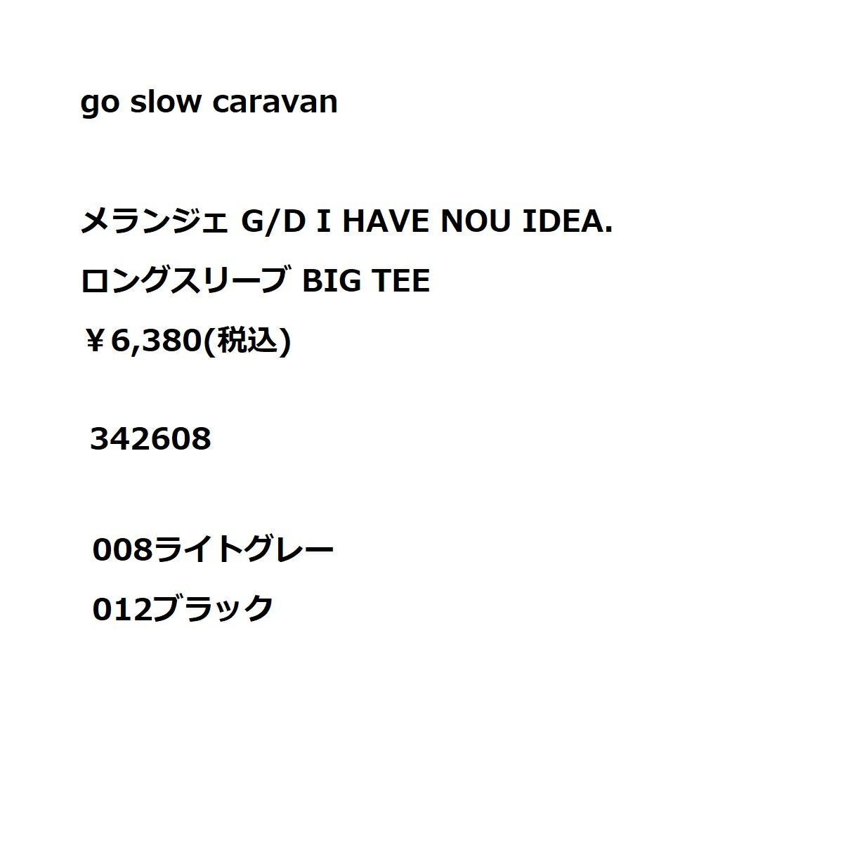 【35%OFF】 ゴースローキャラバン go slow caravan メランジェ G/D I HAVE NOU IDEA. ロングスリーブ BIG TEE Tシャツ 長袖 カジュアル シャツ 342608 008 012 アウトレット セール