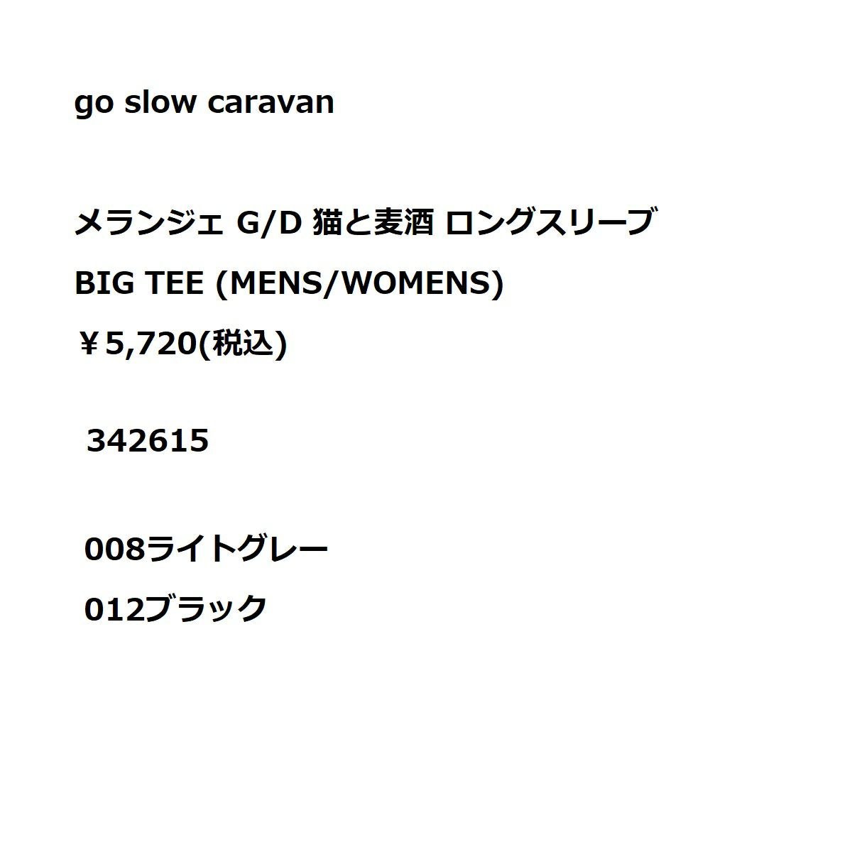 【35%OFF】 ゴースローキャラバン go slow caravan メランジェ G/D 猫と麦酒 ロングスリーブ BIG TEE 長袖 ロンT カジュアル シャツ 342615 008 012 アウトレット セール