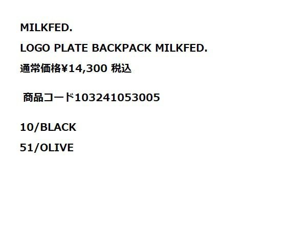 カジュアル バッグ ミルクフェド MILKFED. LOGO PLATE BACKPACK リュック バックパック カジュアル バッグ 103241053005 10 51