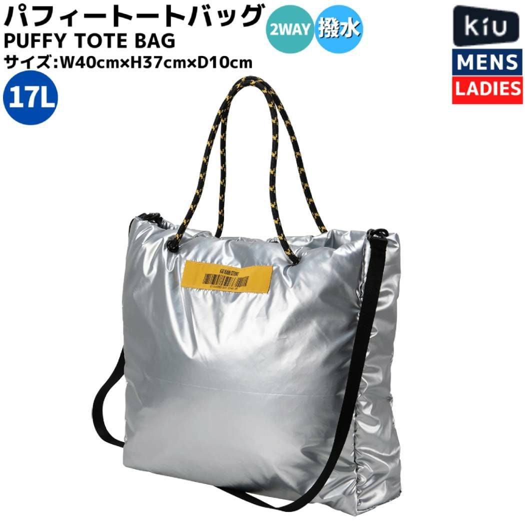 【10%OFF】カジュアル バッグ リュック キウ Kiu PUFFY TOTE BAG パフィートートバッグ メンズ レディース ユニセックス シルバー カジュアル バッグ 斜め掛け はっ水 撥水 2WAY 大容量 K395 955