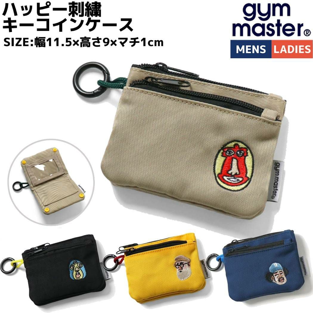 【15%OFF】カジュアル 小物 ジムマスター gym master ハッピー刺繍キーコインケース ナイロン ブラック イエロー ベージュ ネイビー カジュアル 小物 財布 小銭入れ コインケース カード入れ ICカードケース G421734