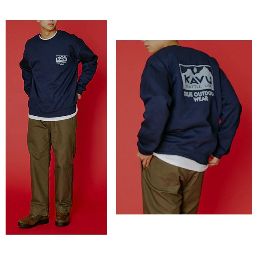 【10%OFF】カジュアル ウェア カブー KAVU True Logo Sweat トゥルーロゴスウェット メンズ カジュアル 秋 冬 長袖 ベージュ グレー ネイビー 紺 アウトドア キャンプ トレーナー ウェア バッグロゴ 19823037