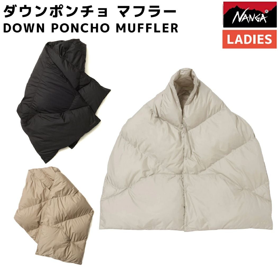 【10%OFF】小物 アクセサリー ナンガ NANGA DOWN PONCHO MUFFLER ダウンポンチョ マフラー レディース 秋 冬 ポンチョ ブランケット ひざ掛け ブラック 黒 アイボリー 白 ベージュ 小物 アクセサリー ポケット付き ボタン付き