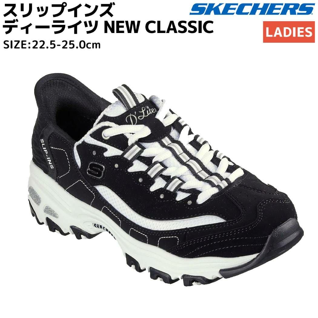 【20%OFF】シューズ スニーカー スケッチャーズ SKECHERS D'Lites NEW CLASSIC ハンズフリー スリップインズ ディーライツ ニュークラシック レディース ブラック シューズ スニーカー ローカット スリッポン 150030-BKW
