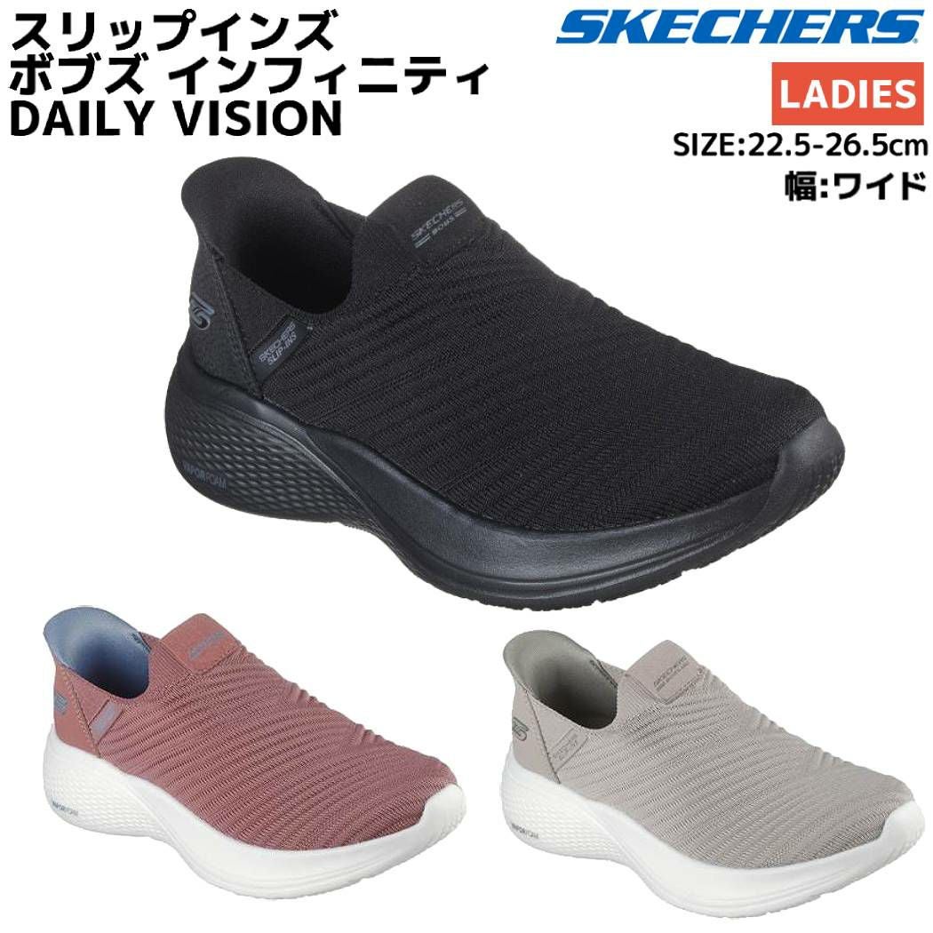 シューズ スニーカー スケッチャーズ SKECHERS BOBS INFINITY-DAILY VISION スリップインズ ボブズ インフィニティ ワイド幅 レディース ブラック ピンク ベージュ シューズ スニーカー ローカット スリッポン 117508W BBK ROS TPE
