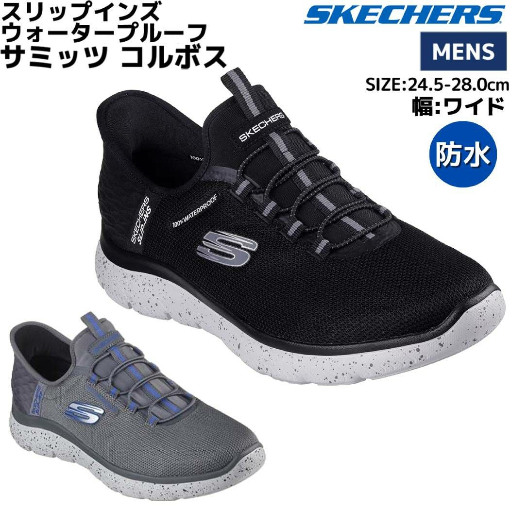 【30%OFF】 スケッチャーズ SKECHERS SUMMITS CORBOS スリップインズ ウォータープルーフ サミッツ コルボス ワイド幅 メンズ ブラック グレー シューズ スニーカー ローカット スリッポン 防水 232962W BKGY CCBL アウトレット セール