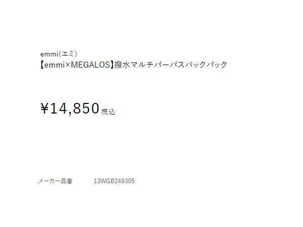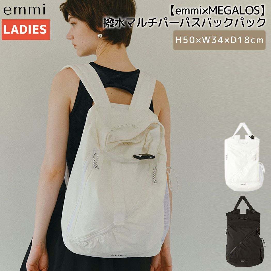 カジュアル バッグ エミ emmi 【emmi×MEGALOS】撥水マルチパーパスバックパック レディース ホワイト ブラック 肩掛け 斜め掛け 手持ち カジュアル バッグ バックパック リュック シンプル オフィス ジム シンプル 13WGB249305