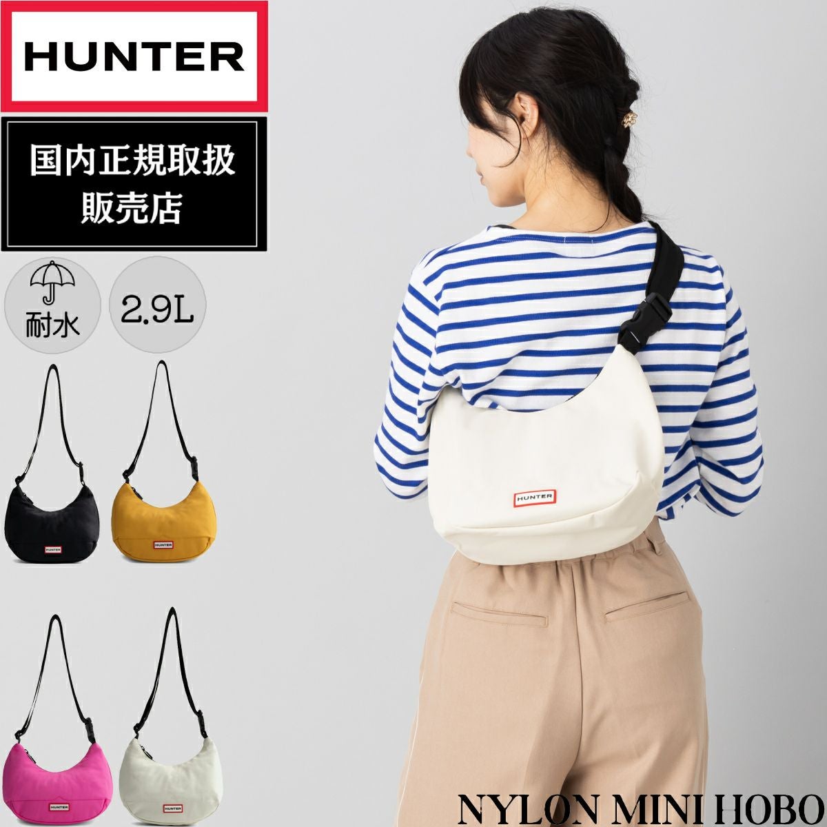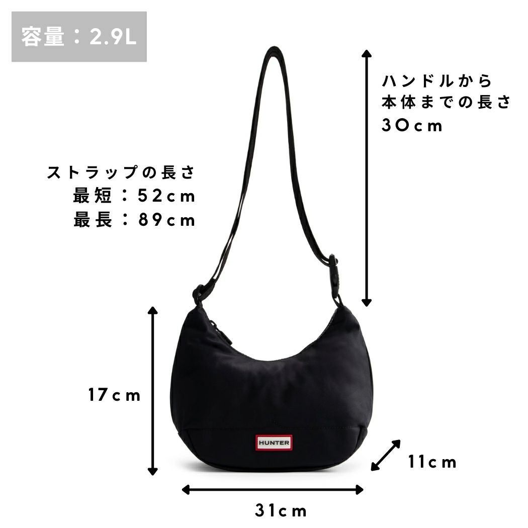 【30%OFF】 【正規取扱販売店】ハンター HUNTER NYLON MINI HOBO ナイロン ミニ ホーボー 2.9L メンズ レディース ユニセックス ショルダーバッグ クロスボディ カジュアル バッグ ミニバッグ 半月型 斜め掛け 肩掛け 耐水 旅行 フェス シンプル デイリーユース UBS3600KBM アウトレット セール