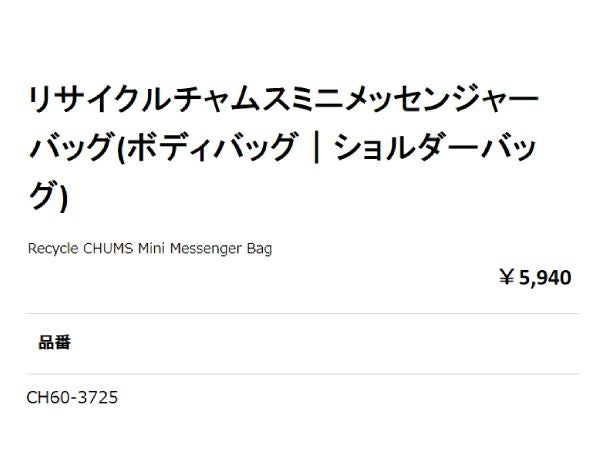 【11%OFF】カジュアル バッグ チャムス CHUMS リサイクルチャムスミニメッセンジャーバッグ メンズ レディース ユニセックス オールシーズン カジュアル アウトドア 旅行 トラベル バッグ ボディバッグ メッセンジャーバッグ ミニバッグ B5サイズ サステナブル CH60-3725