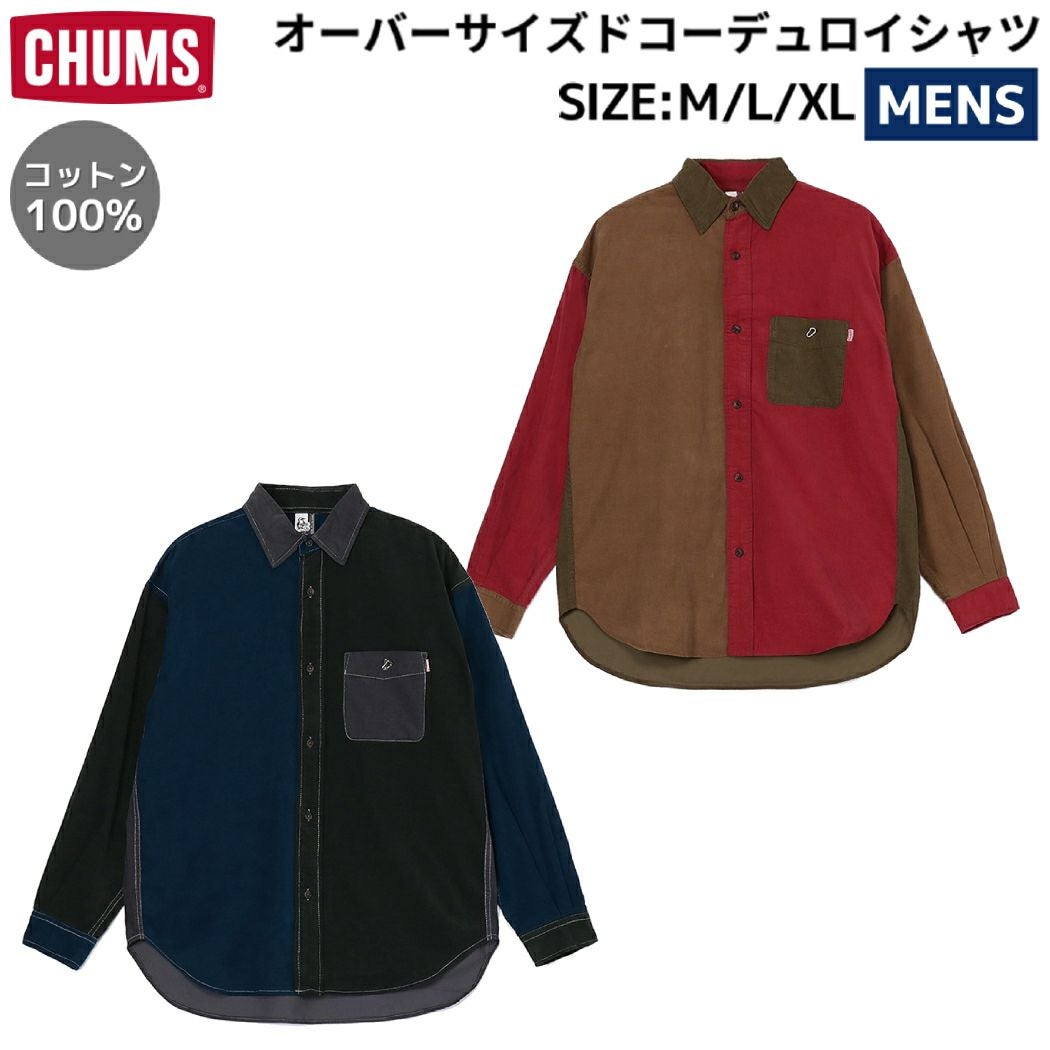 【30%OFF】 チャムス CHUMS オーバーサイズドコーデュロイシャツ メンズ 秋 冬 綿100% カジュアル アウトドア シャツ 長袖 襟付き ボタンシャツ オーバーサイズ CH02-1224 アウトレット セール
